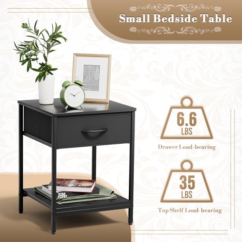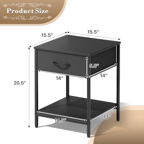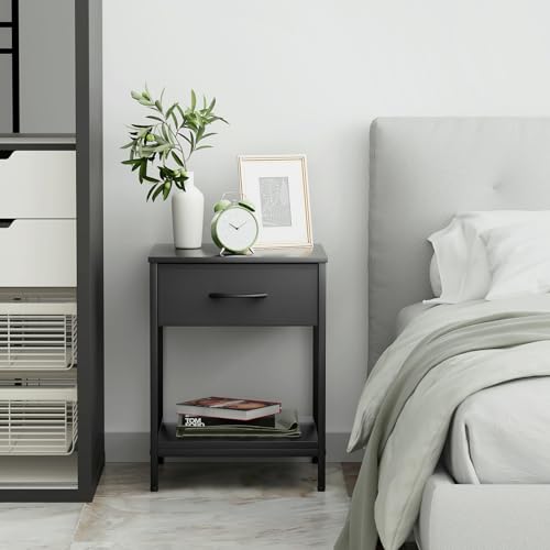 Athena Collection Single Drawer Nightstand Chest Storage with Open Shelf, End Table with Drawer, Bedside Table with Steel Frame for Bedroom, Dorm, Living Room, Hallway, Gray