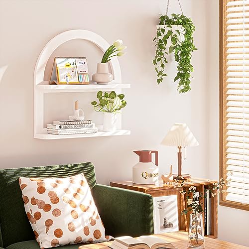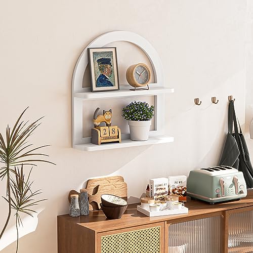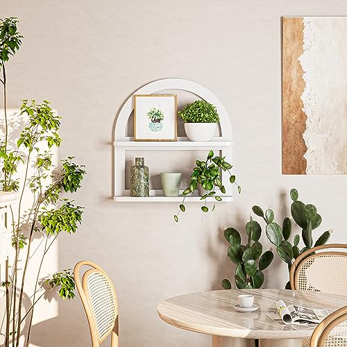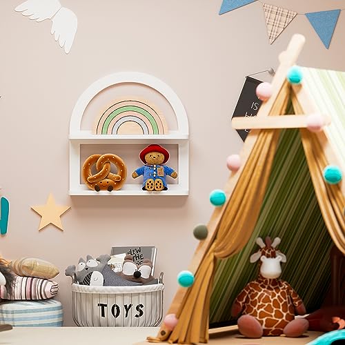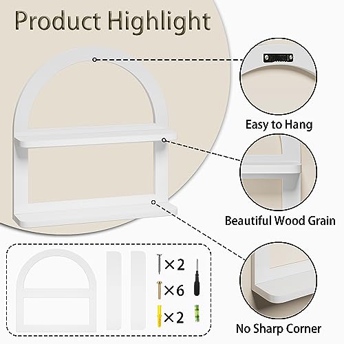 2 Tier Natural Arched Wall Shelf, Pine Wood Fan-shaped Nursery Floating Shelf, Cute Boho Shelf for Neutral Nursery Decor, Arched Bookshelf for Storage, Wooden Decorative Shelf for Home & Office, White