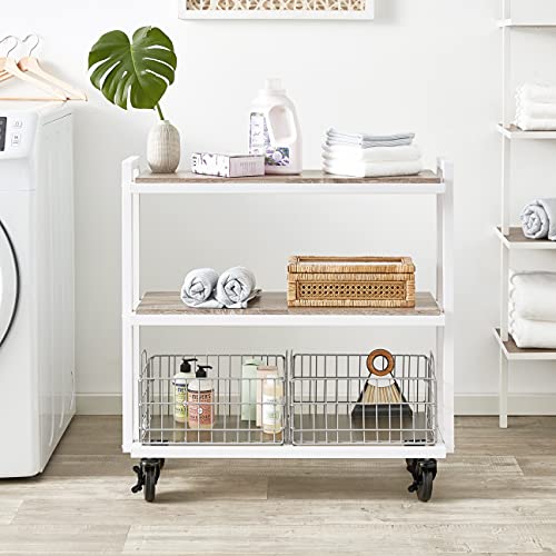 Atlantic Modular Mobile Storage Cart System, with Interchangeable Shelves & Baskets, Powder-Coated All-Steel Frame, 3-Tier, Caster Wheels for Mobility, PN 23350328, in White