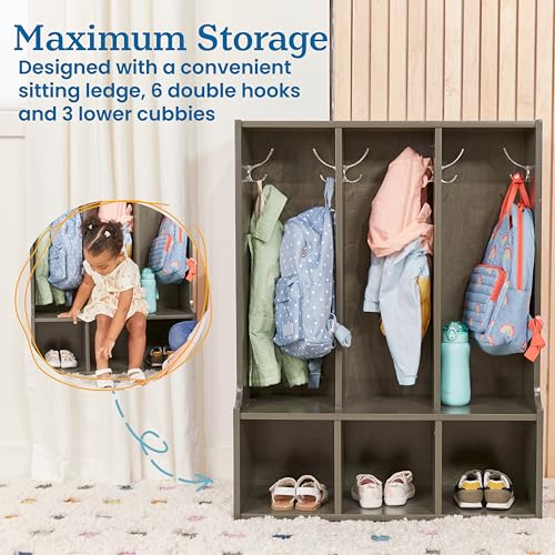 ECR4Kids Streamline 3-Section Toddler Coat Locker with Bench, Kids Furniture, Grey Wash