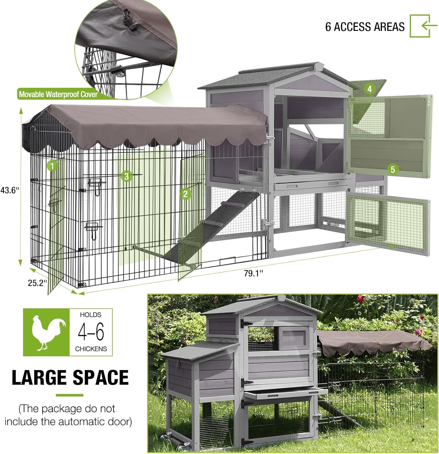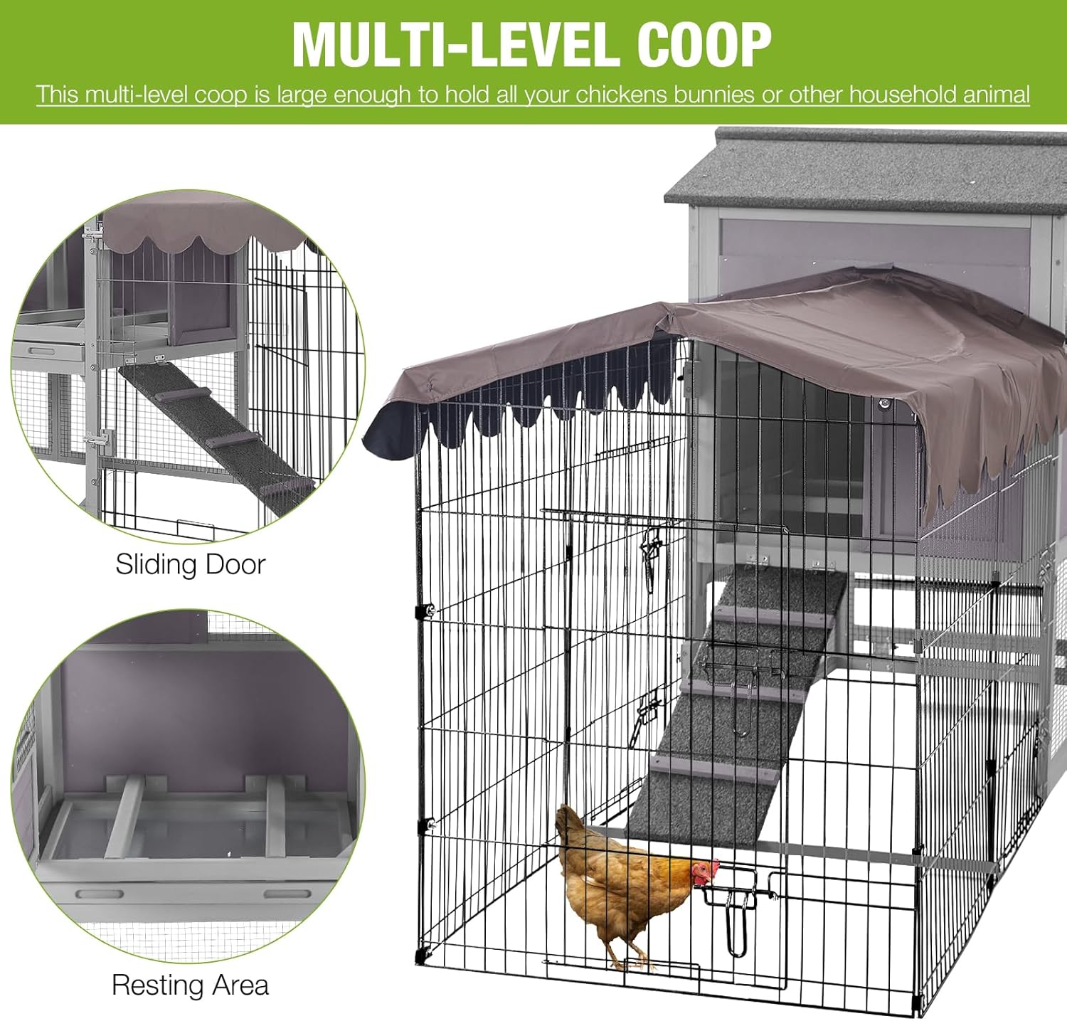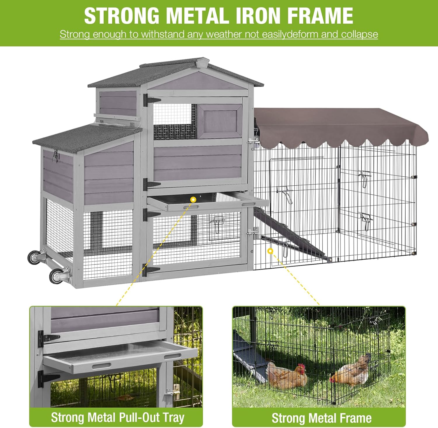 Mobile Chicken Coop 79" Large All-Steel Frame Hen House Poultry Cage with Metal Run,Waterproof Rain Cover