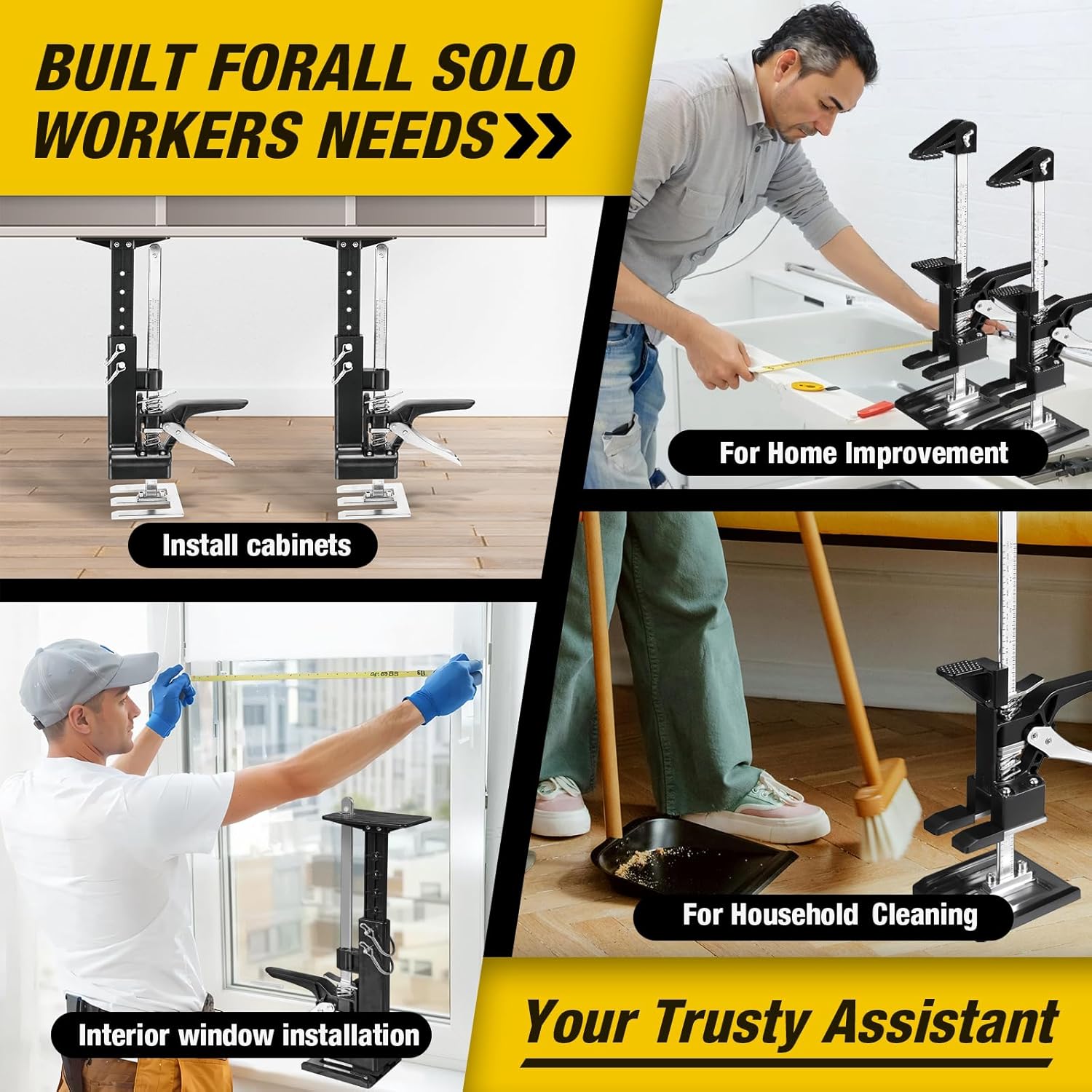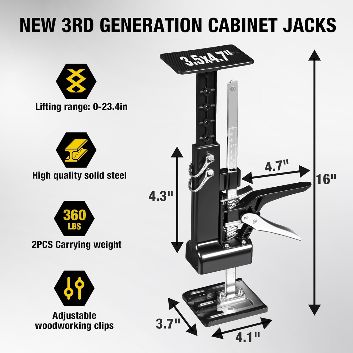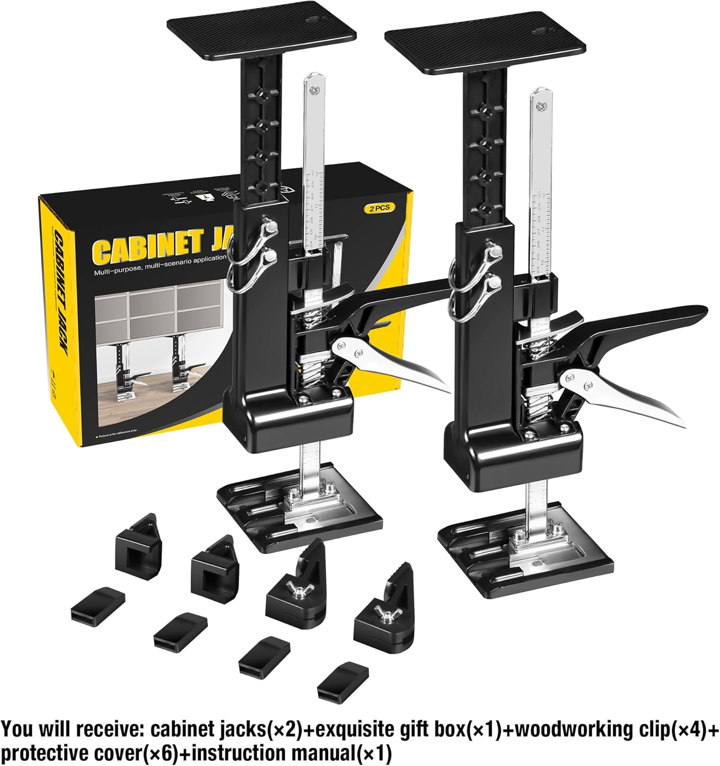 YELLOW JACKET Cabinet Jacks 2 Pack for Installing Cabinets, Labor Saving Arm Jack with 360 LBS,0 to 23.4 inches, 3rd Hand Support System, Drywall Lift, Hand Lifting Jack Tool