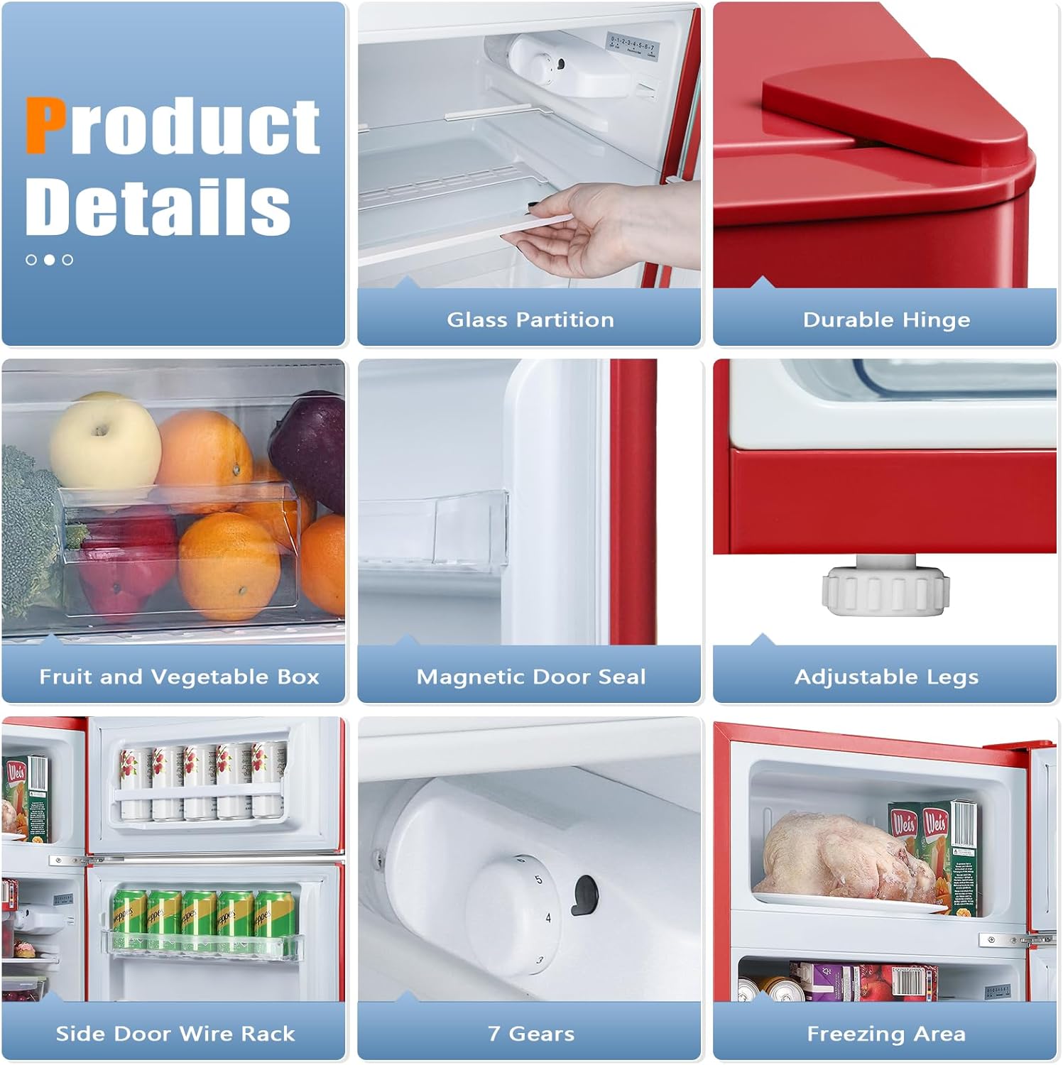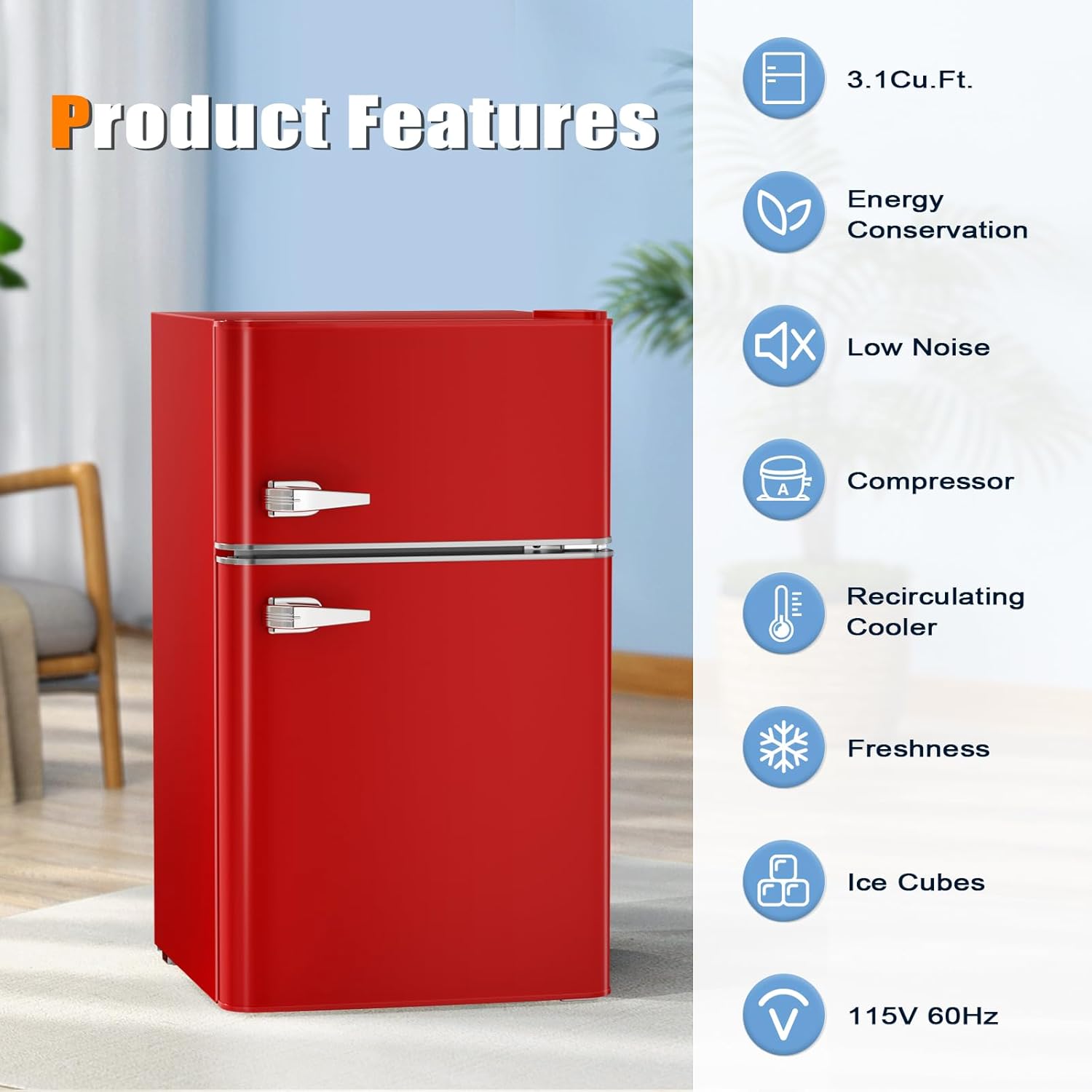 Antarctic Star Compact Mini Refrigerator Separate Freezer, Small Fridge Double 2-Door 3.2 cu ft. Red