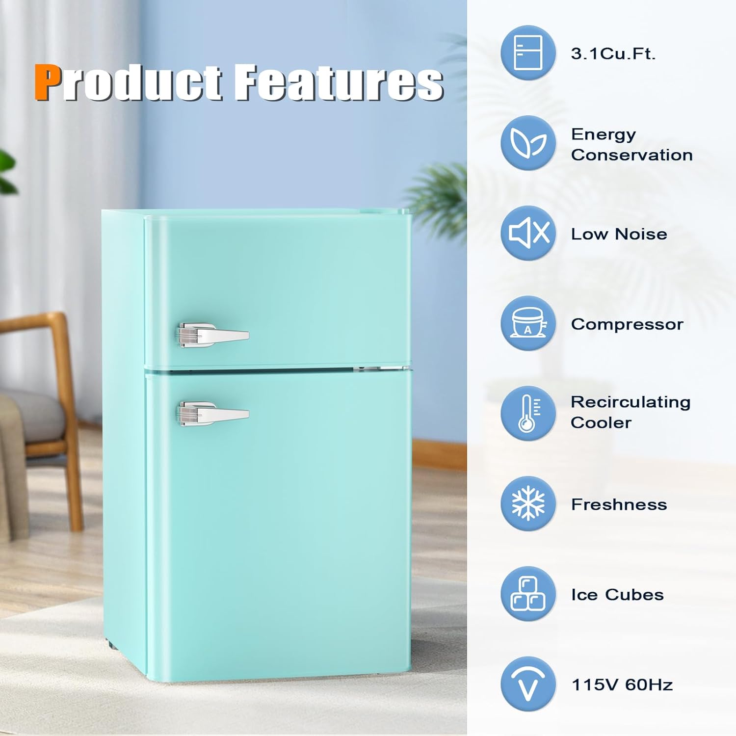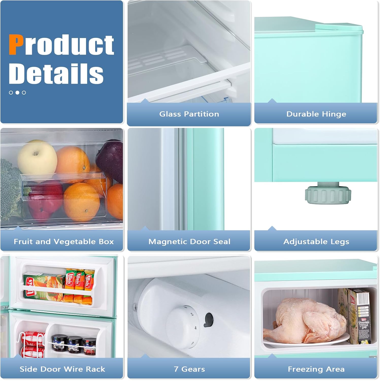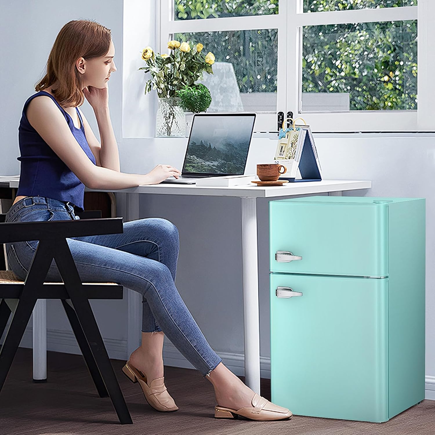 Antarctic Star Compact Mini Refrigerator Separate Freezer, Small Fridge Double 2-Door 3.2 cu ft. Green