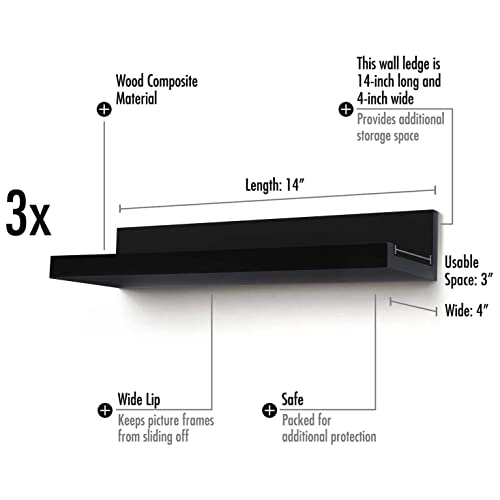 Americanflat 14" White Floating Shelves for Wall Set of 3 - Engineered Wood Shelves for Wall Storage - Floating Shelves for Bedroom, Bathroom, Kitchen, Office, and Living Room Picture Ledge Shelf