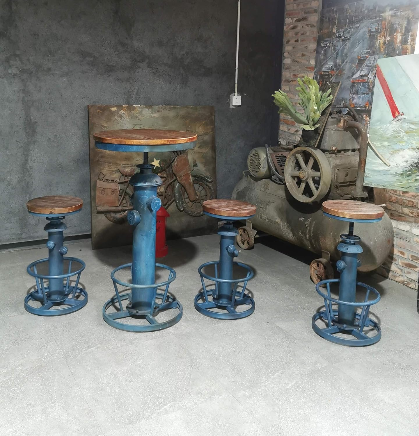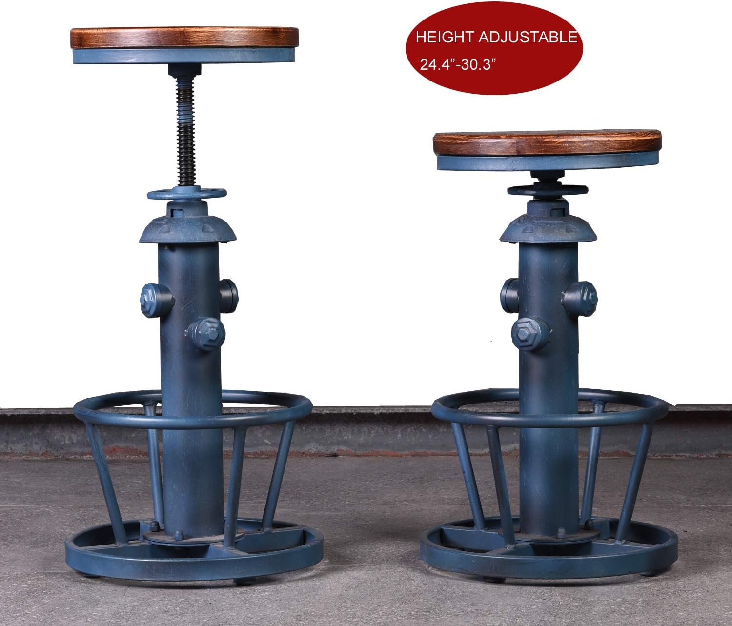 Topower 3 Piece Pub bar Set Retro Round bar Table and Stools for 2 Height Adjustable Pub Table and stools Match bar Height and Counter Barstool Antique Blue(1 Table + 2 Chairs)