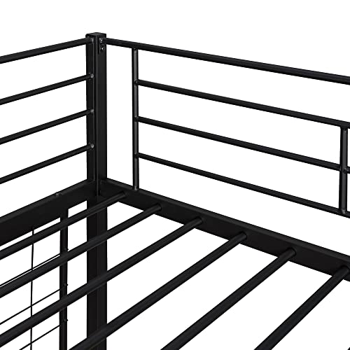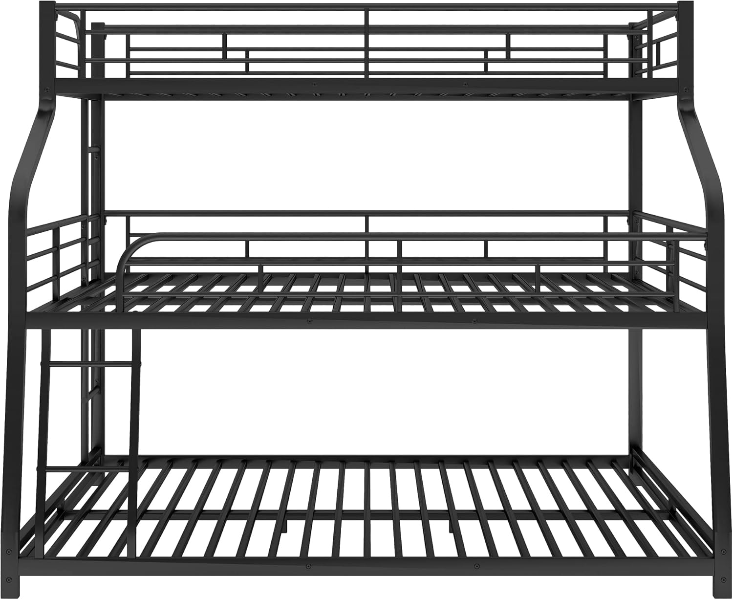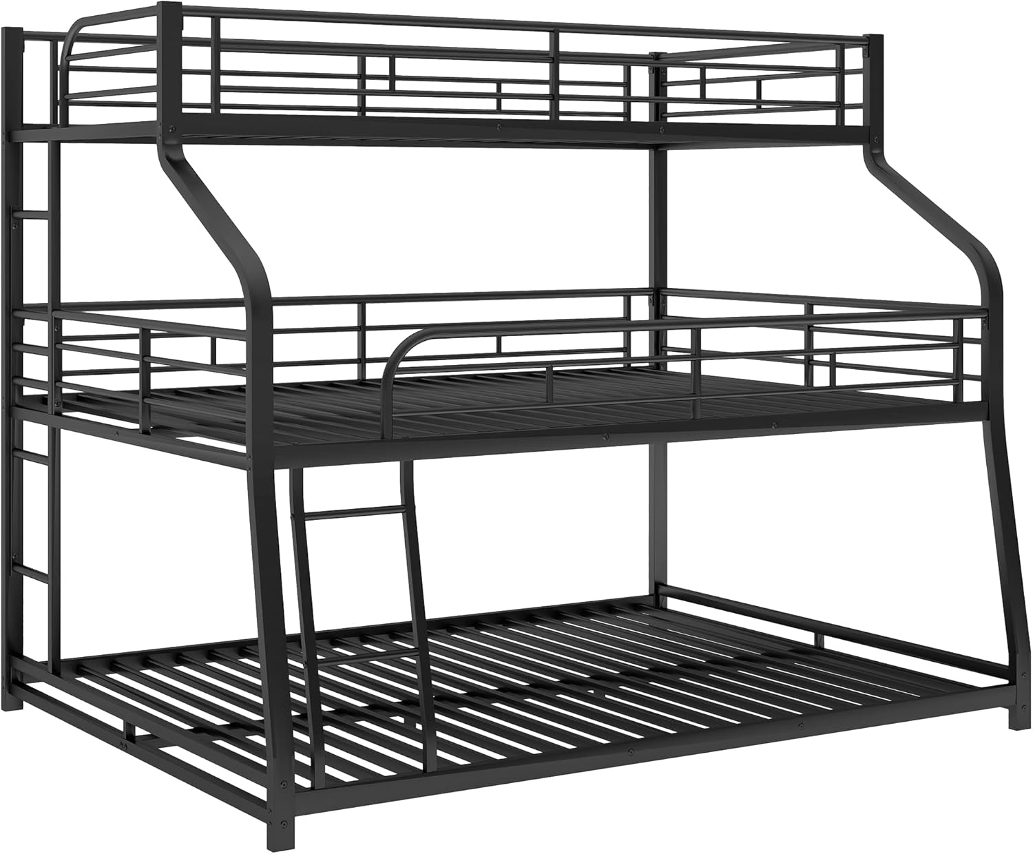 Metal Twin XL Over Full XL Over Queen Triple Bunk Bed with Dual Ladders and Safety Full-Length Guardrails, Metal Triple Bunk Bed for Kids Teens Adults, Space-Saving Sleep Haven, Black