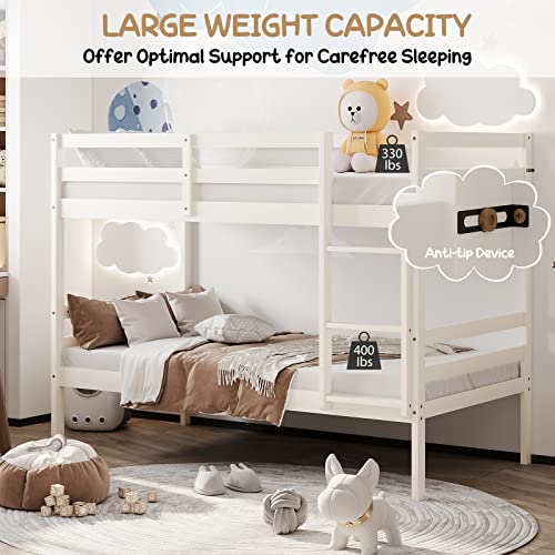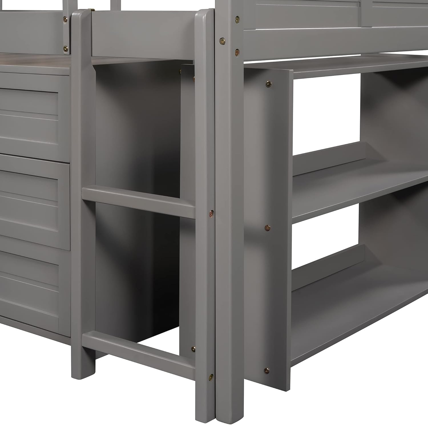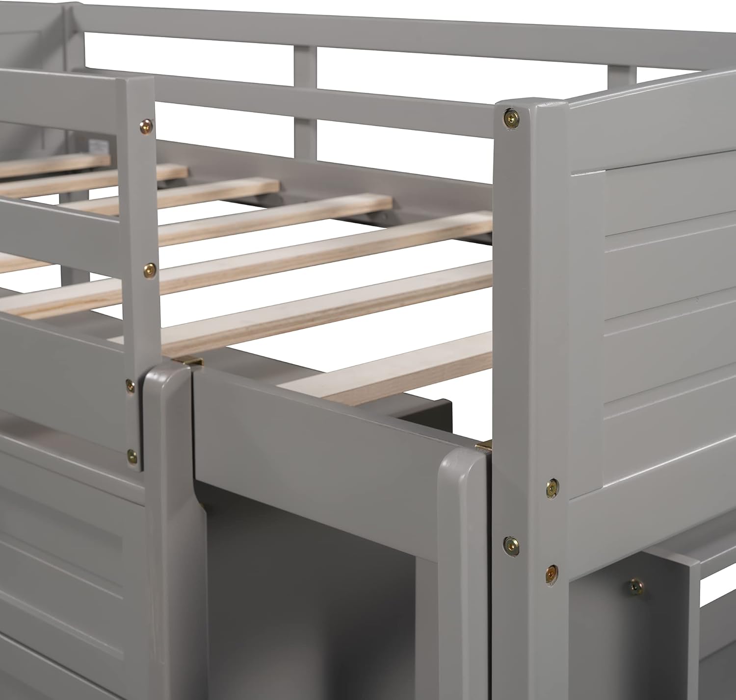 GORELAX Twin Over Twin Bunk Bed, Space Saving Wood Bed Frame w/Under Bed Storage, Ladder & Guardrail, Dorm & Multichild Family, Modern Bunk Bed for Kids, Teens, Sleepovers, Adults (Grey)