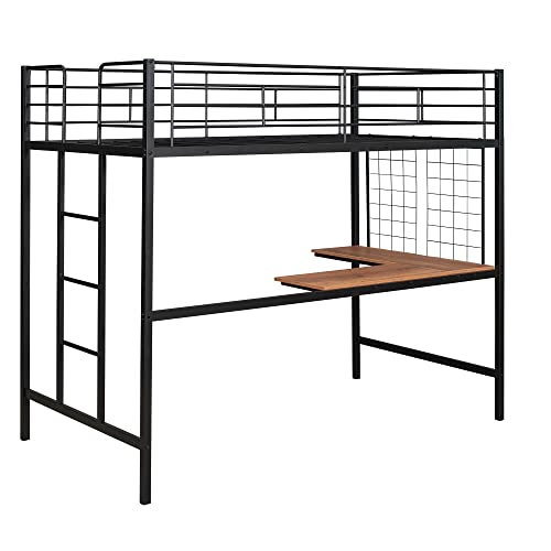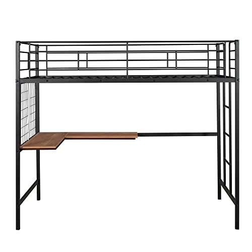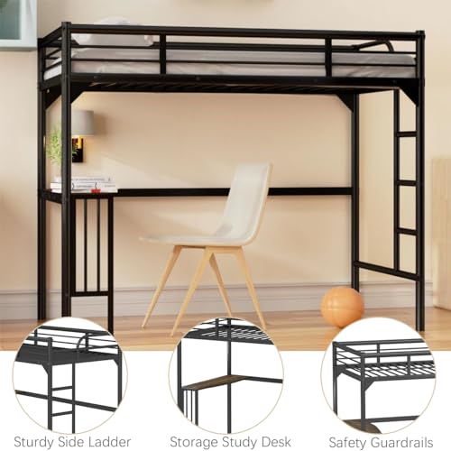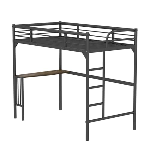 Twin Metal Loft Bed with Bookdesk, Ladder and Safety Guardrails, Heavy Duty Bed Frame for Boys Girls Teens Adults, Space Saving, Noise Free (Silver)