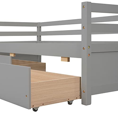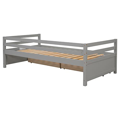 Twin Size Storage Platform Bed with 2 Storage Drawers Under Bed, Solid Wood Daybed with Headboard for Kids Teen Boys Grils, Space-Saving, No Box Spring Needed