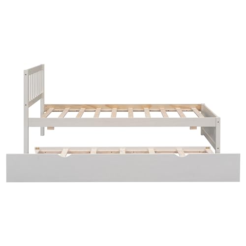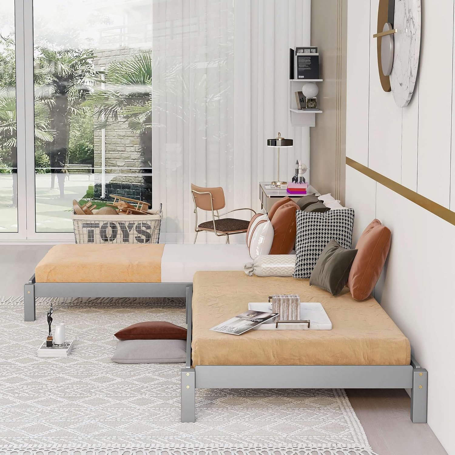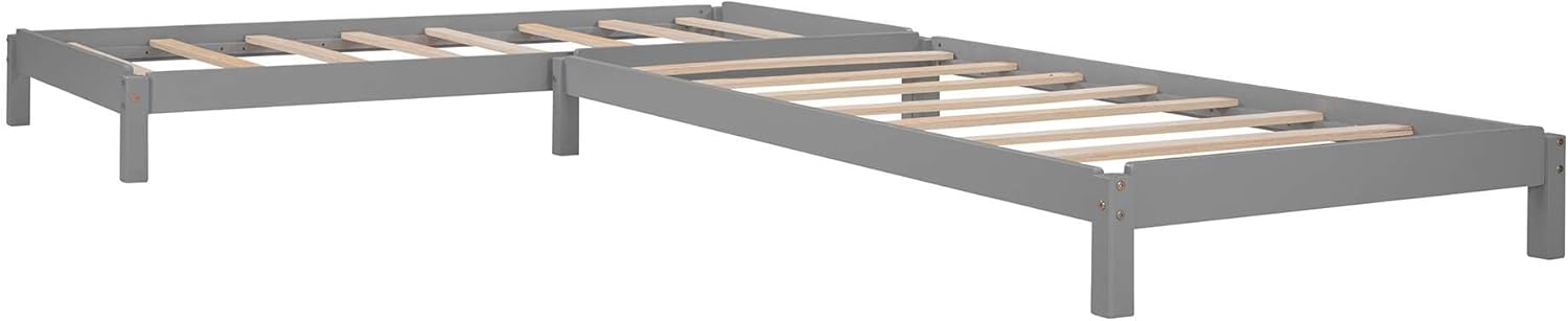 Stackable Twin Platform Beds, Set of 2, Solid Wood Guest Beds in Elegant Gray Finish, Space-Saving Design, No Box Spring Required