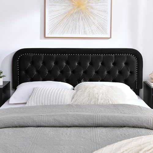 Velvet Soft Cushion Tufted Button Headboard, Modern Minimalist Rectangular Velvet Mattress Headboard, Filled with High-Density Sponge Cushion Backrest (Q Grey)