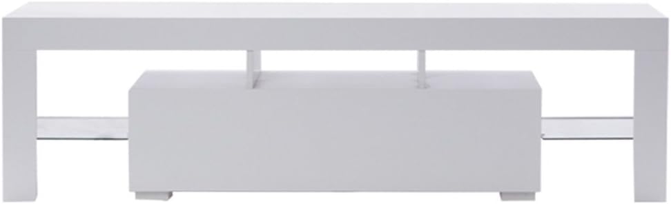 LED TV Stand Cabinet, 130CM Width Modern TV Desk with Storage for Living Room Bedroom Home Furniture, High Gloss TV Cabinet with Free LED Light (White)