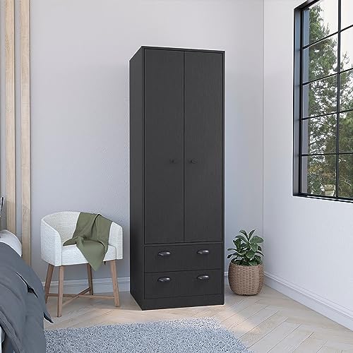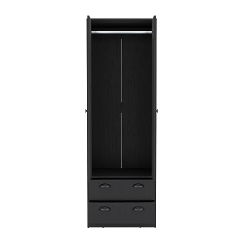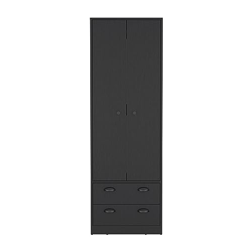 Black Wardrobe, Wardrobe in Large Capacity, Black Wardrobe with Two Drawers, Particle Board Wardrobe