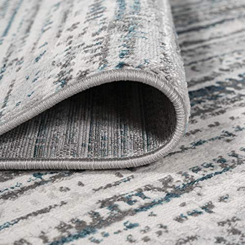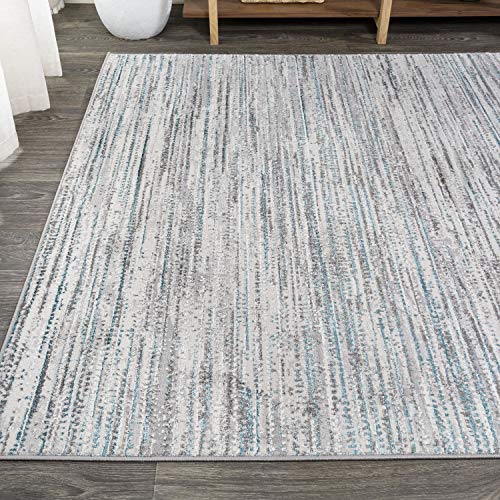 JONATHAN Y SOR200B-5 Loom Modern Strie' Indoor Area-Rug Solid Striped Casual Transitional Easy-Cleaning Bedroom Kitchen Living Room Non Shedding, 5 ft x 8 ft, Gray/Turquoise