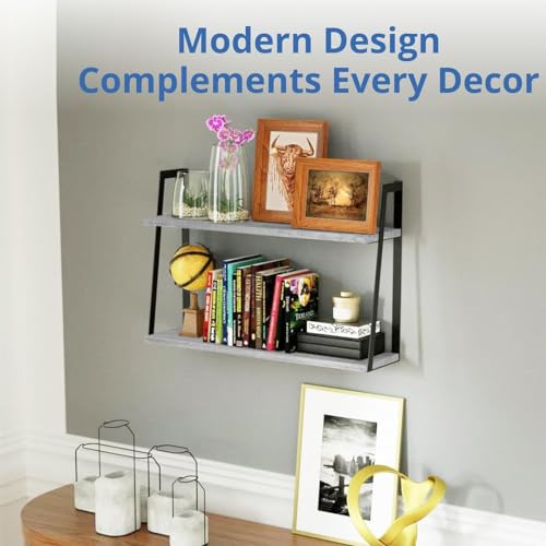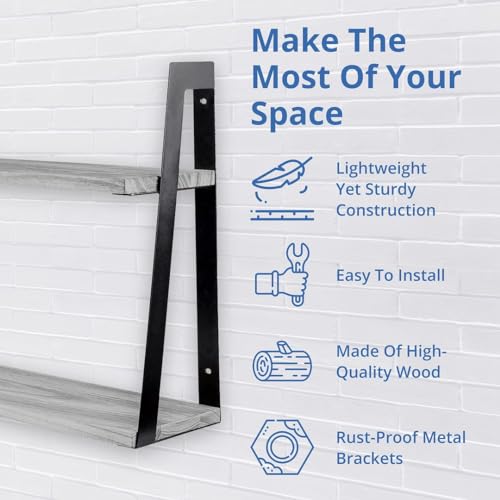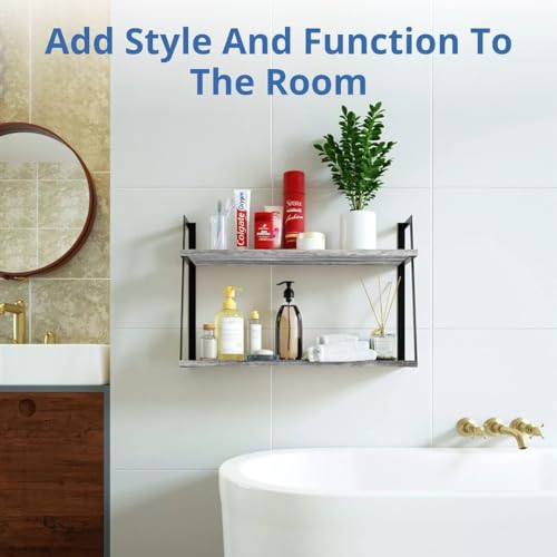 Halter Wall Mounted Floating Shelf with Rail and Wooden Towel Rod, Grey Wood