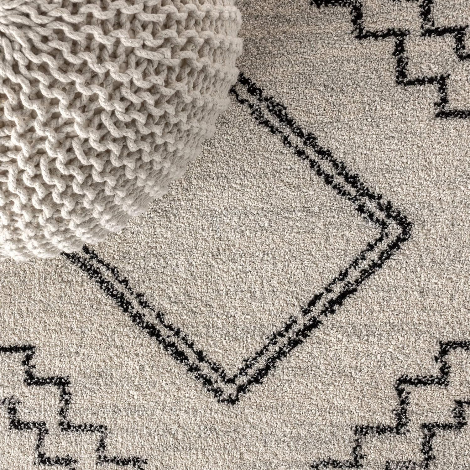 JONATHAN Y MOH200A-9 Amir Moroccan Beni Souk Indoor Area Rug, Bohemian, Scandinavian, Transitional, Bedroom, Kitchen, Living Room, Easy-Cleaning, Non-Shedding, 9 X 12, Cream/Black