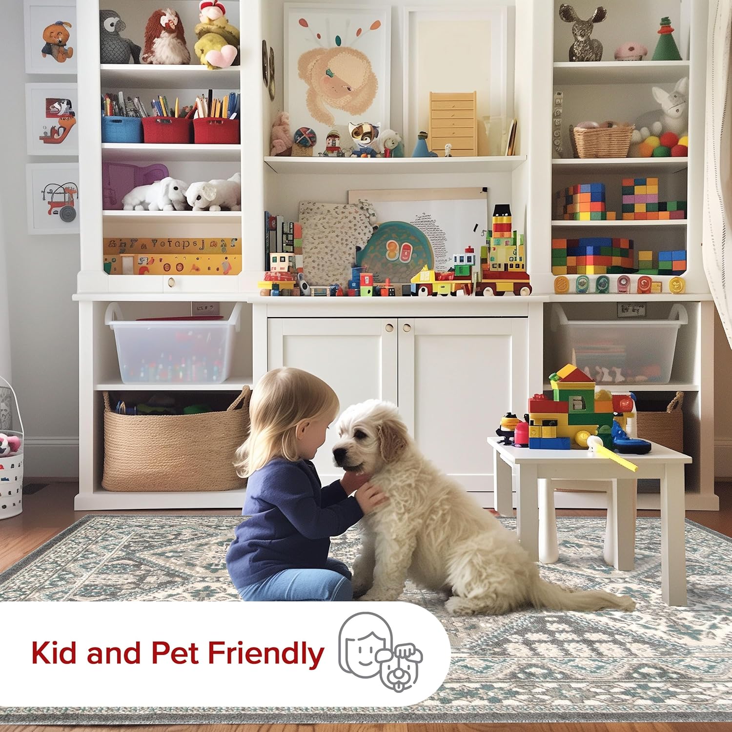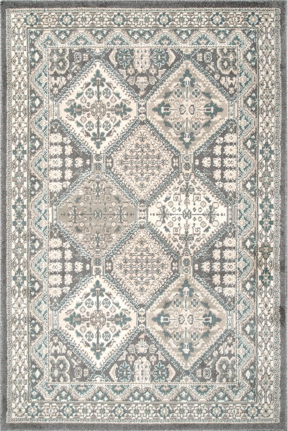 nuLOOM 5x8 Becca Traditional Tiled Area Rug, Charcoal, Faded Transitional Design, Stain Resistant, For Bedroom, Dining Room, Living Room, Hallway, Office, Kitchen, Entryway