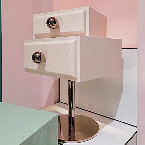 Nordic Bedside Table, Personality Fashion Solid Wood Metal Handle Bedside Table with 2 Drawers, Stainless Steel Base High-Grade Wood Grain Side Table (Color : K)