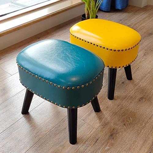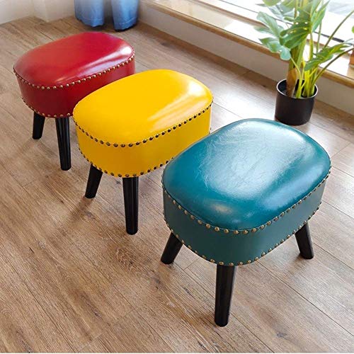 Fashion Creative Shoe Stool Solid Wood High Stool Household Oval Footstool (Color:Fluorescent Blue,Size:30x40x35cm)