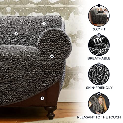 PAULATO BY GA.I.CO. Chaise Lounge Cover - Stretch Lounge Chair Sofa Slipcover - Shiny Velvet Chaise Lounge Protector for Pets and Kids - Soft Slipcovers - Furniture Slip Cover - Fuco Velvet - Brown