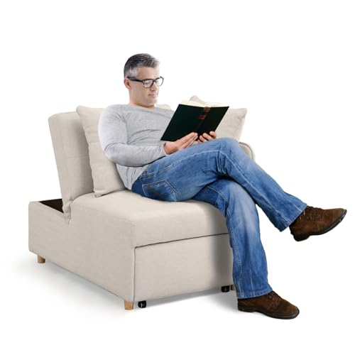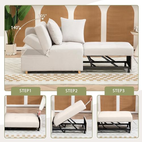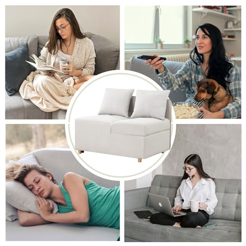 3-in-1 Convertible Futon Sofa Bed: Adjustable, Multi-Functional Lounger Sleeper Recliner Chair with Linen Fabric for Small Spaces - Includes 2 Throw Pillows(Grey)