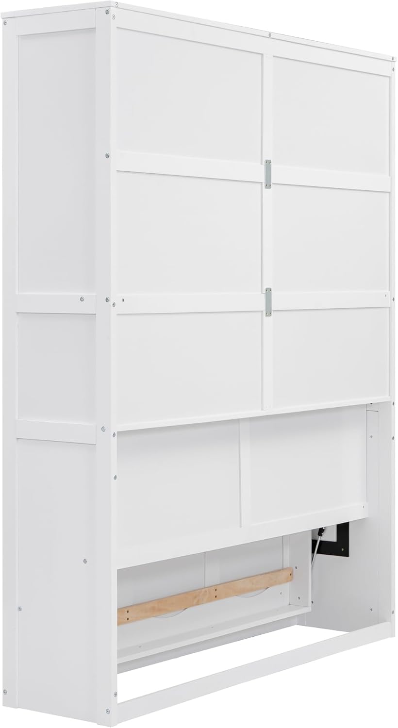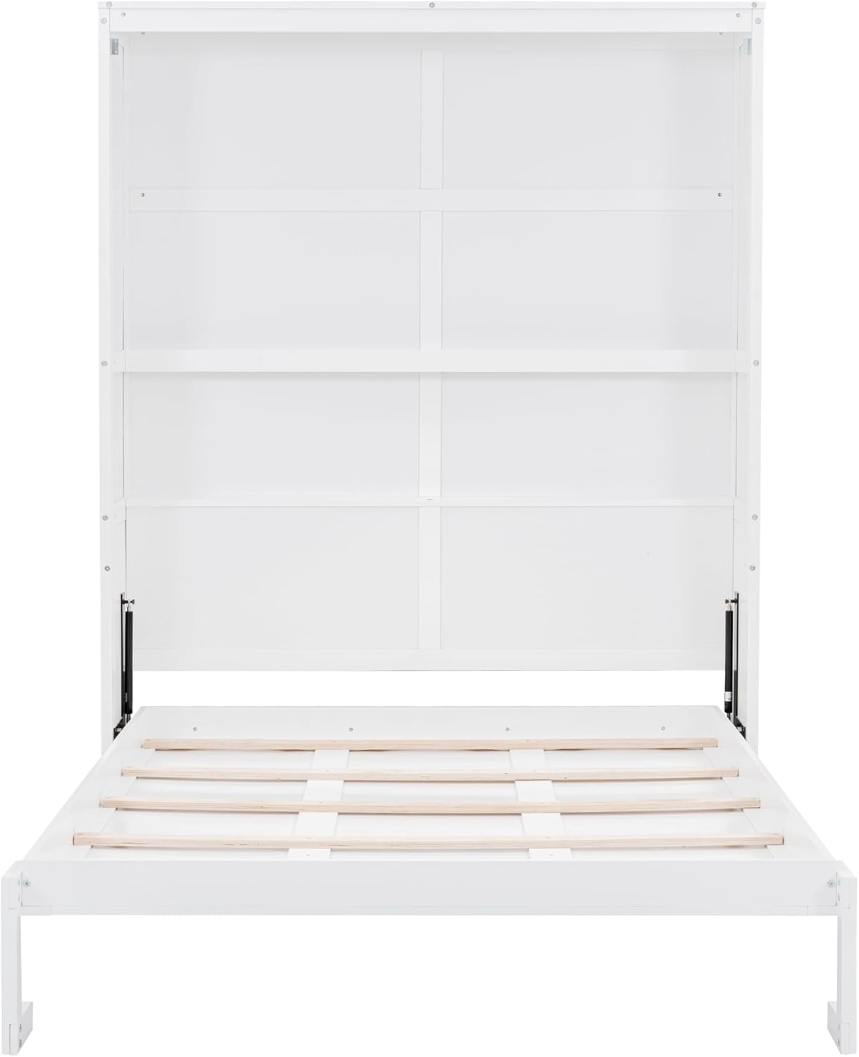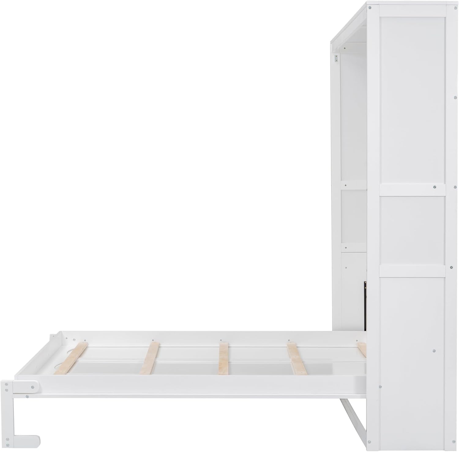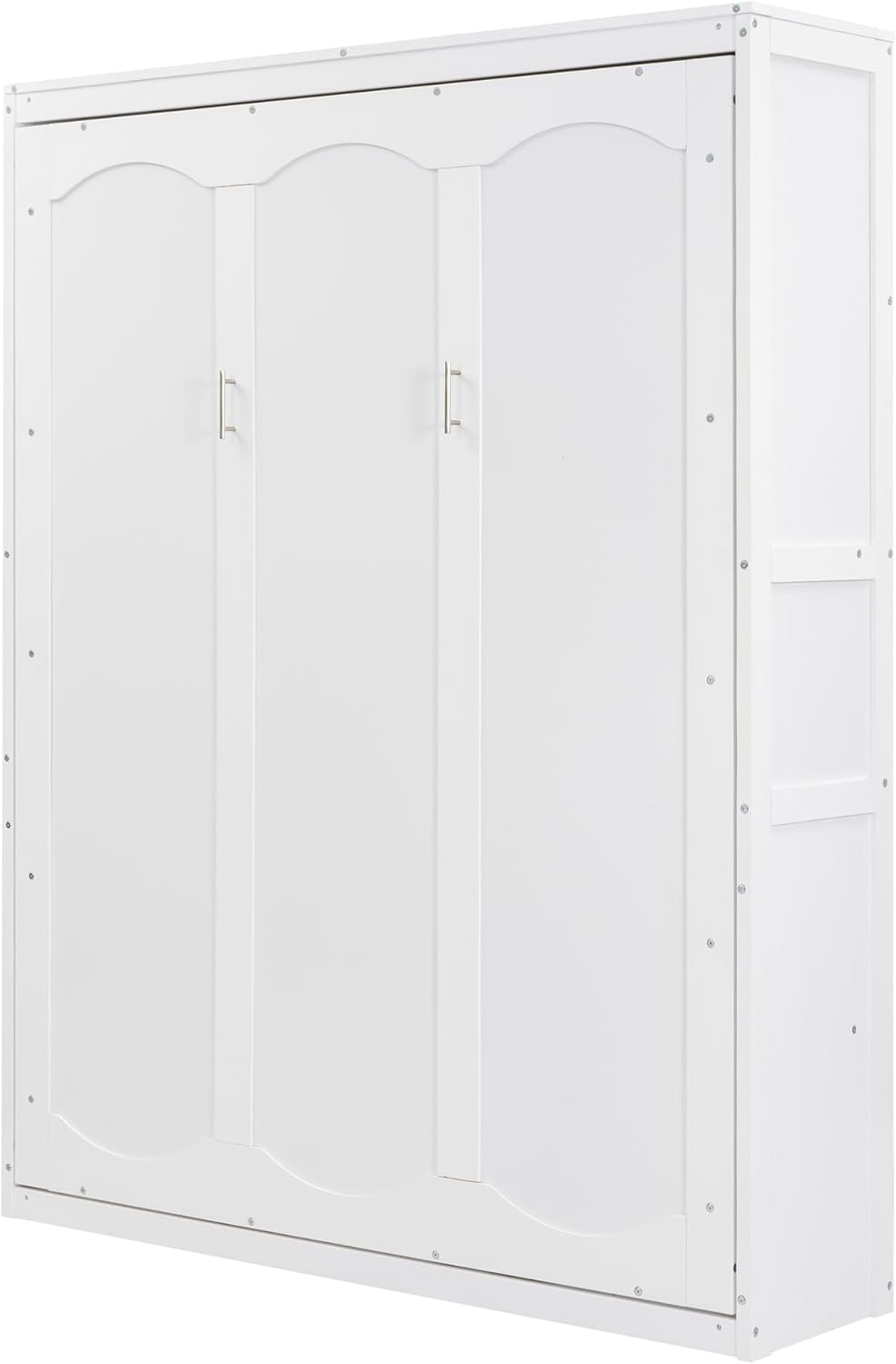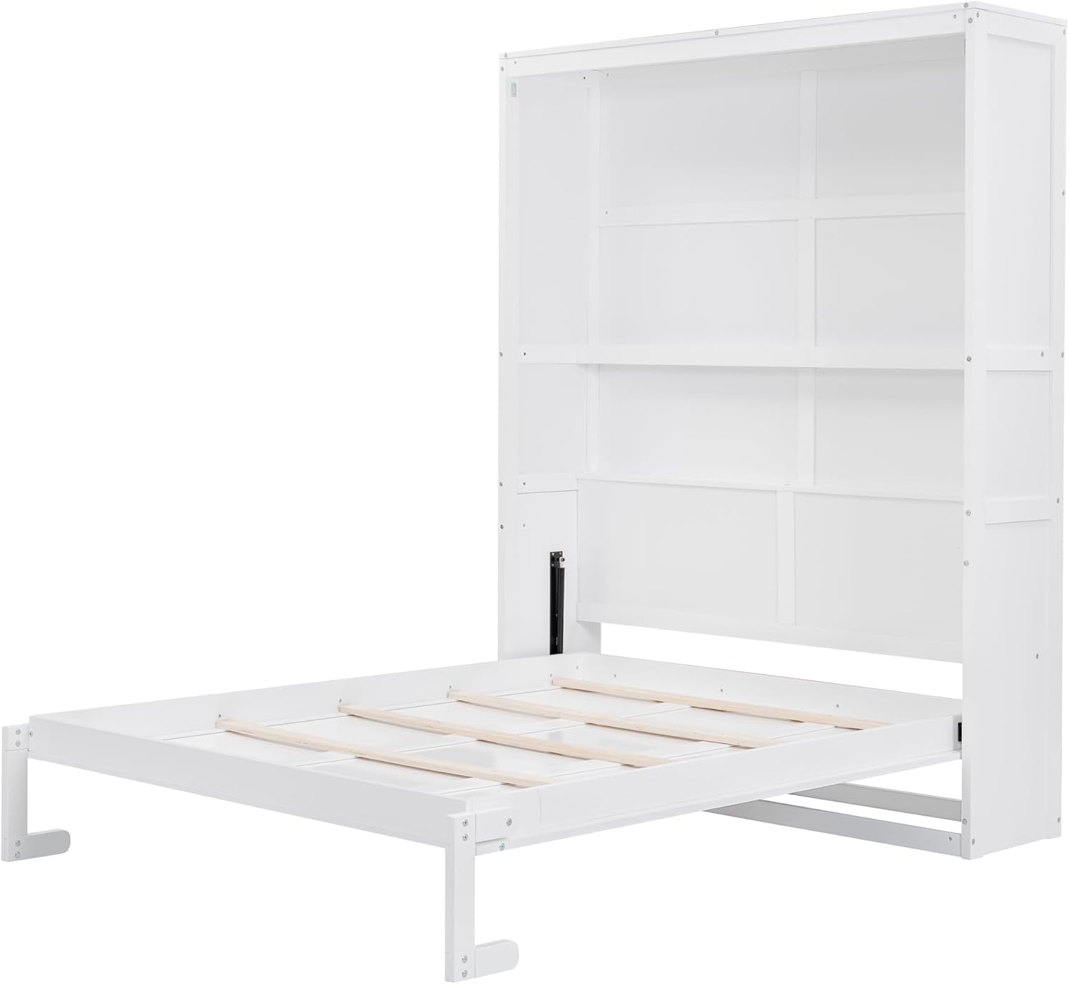 Multi-Functional Night & Day Furniture Murphy Cabinet Bed, Queen Size Murphy Bed Wall Bed with Shelves, Mobile Cabinet Bed Murphy Chest Bed, Space-Saving Folding Murphy Bed(White)