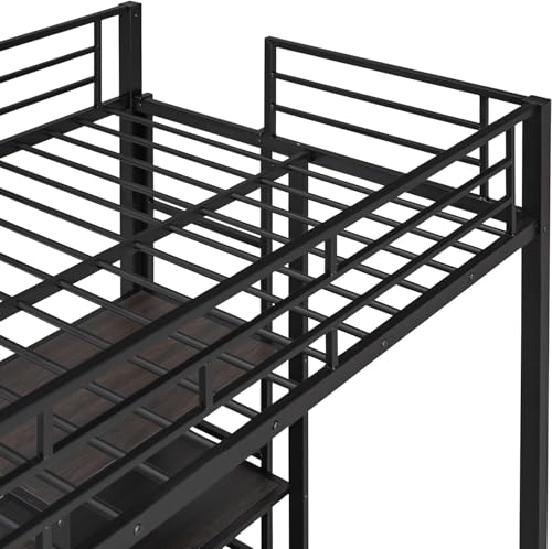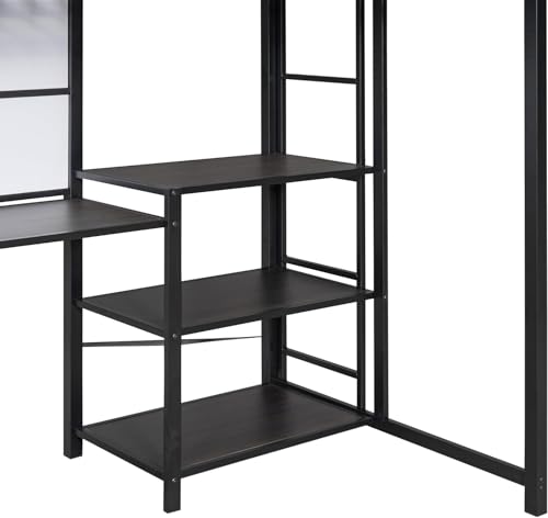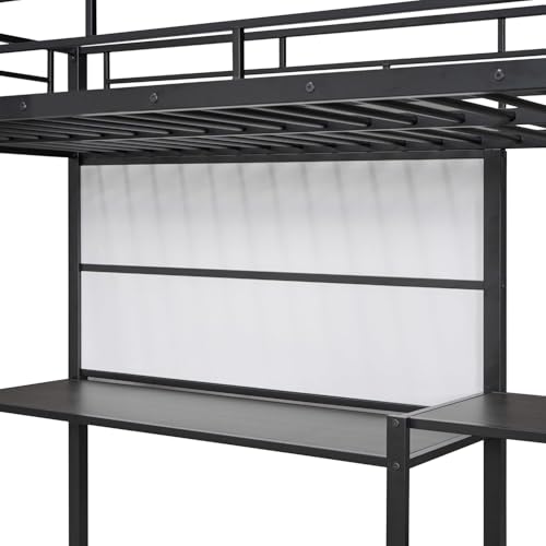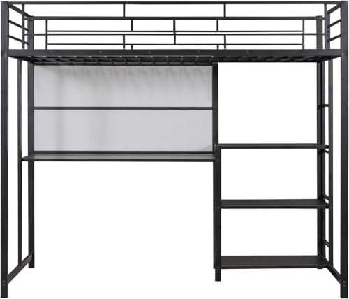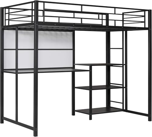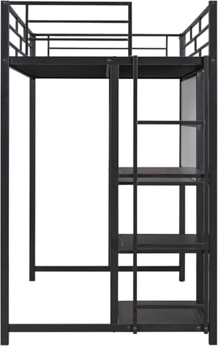 Metal Loft Bed Frame, Heavy Duty Twin Loft Bed with Ladder, Space-Saver Multifunctional Loft Bed Twin, Loft Bed with Safety Guard Rails Compatible with Girls Boys (Twin,Black),bed frame