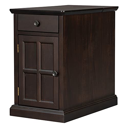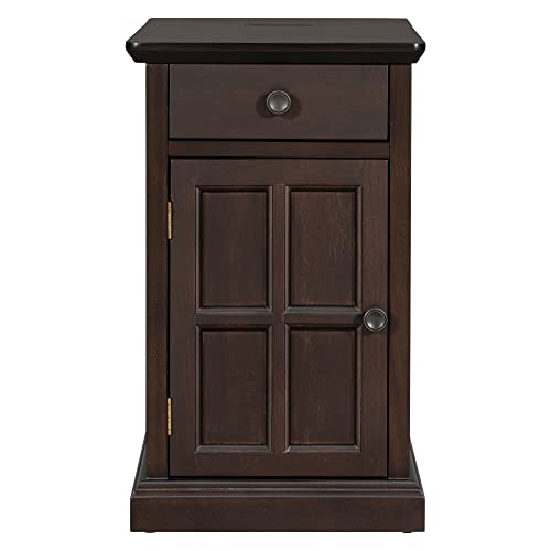 Quarte Retro Stylish Nightstand with Charging Station,End Table Side Table with 1 Multifunctional Drawer Built-in Cup Holders and USB Ports,for Living Room,Bedroom (Antique Navy#S)