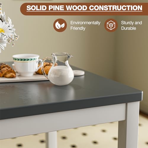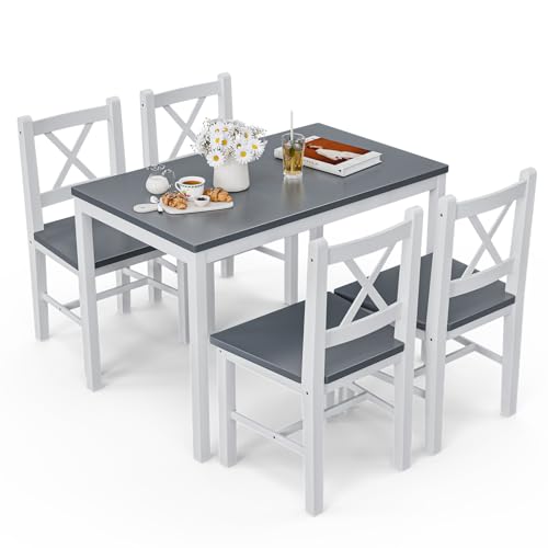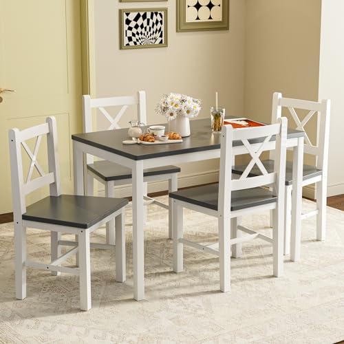 Kitchen Table and Chairs for 4, Solid Wood 5-Piece Dining Table Set, Space-Saving Farmhouse Kitchen Furniture for Home, Apartment, Dining Room, Restaurant