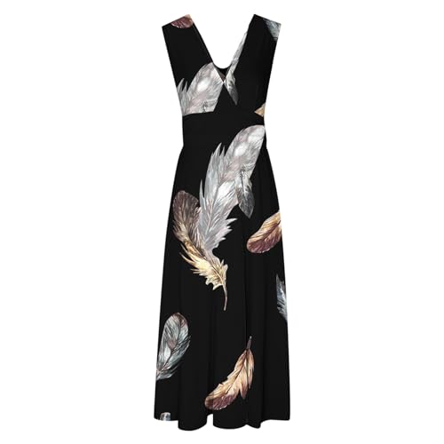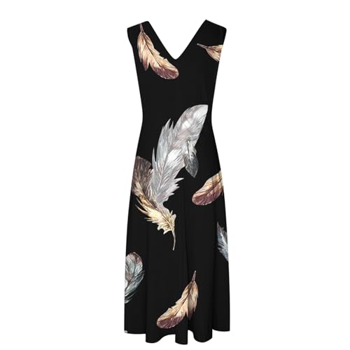 Summer Dresses for Women Casual Fashion Sleeveless V Neck Floral Dress High Waisted Flutter Ladies Sexy Maxi Dresses