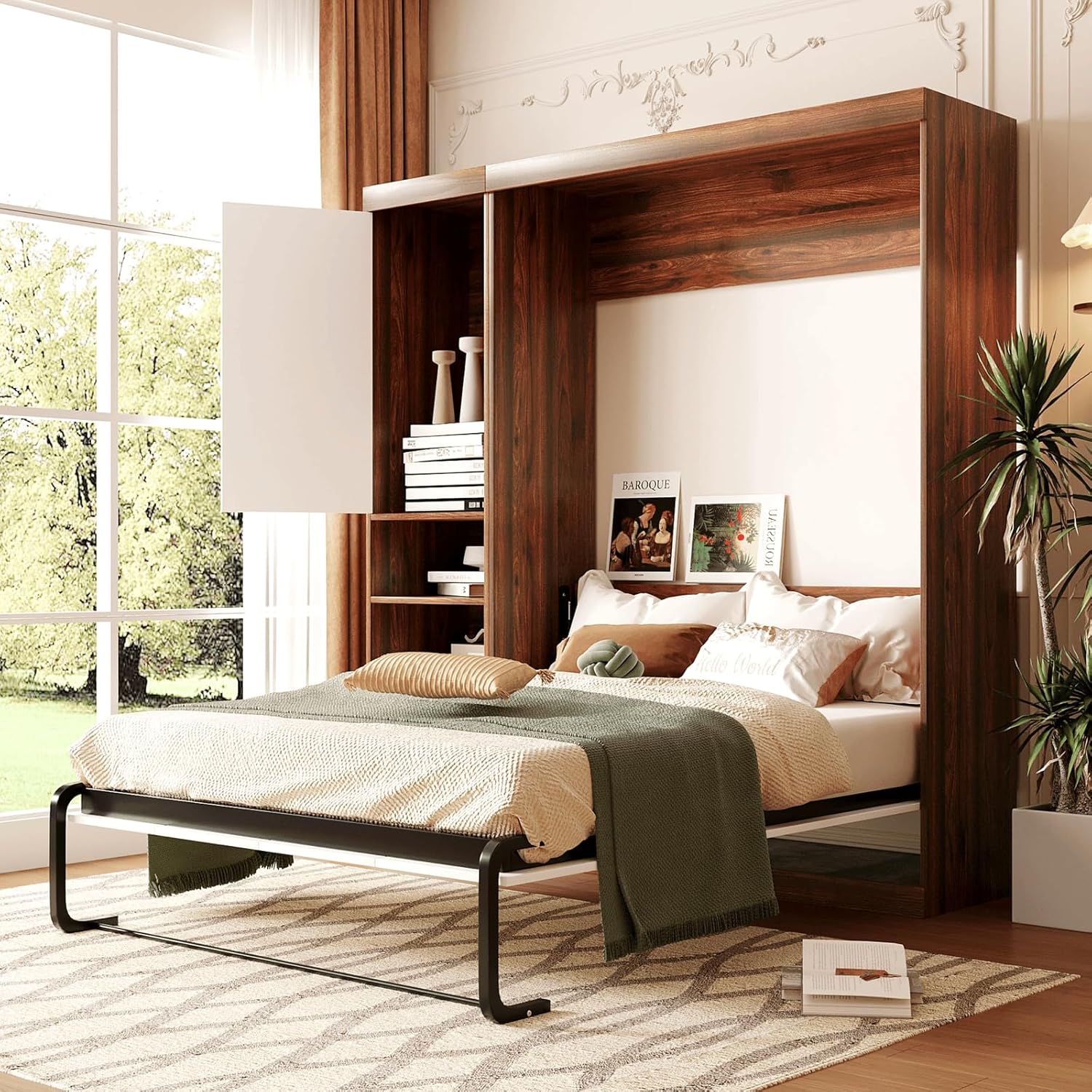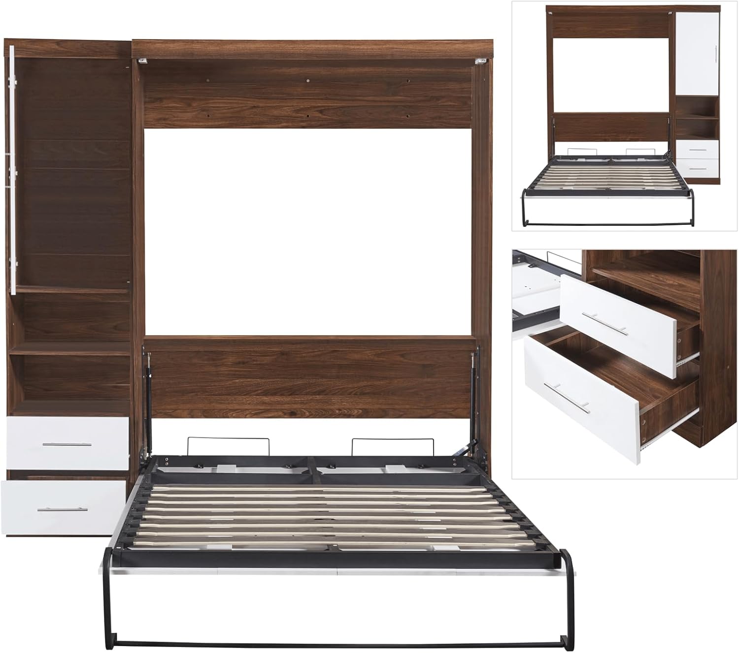 Murphy Bed with Cabinet - Full Size Multifunctional Wall Bed for Bedroom Apartment Dorm, Can be Folded Away into a Cabinet, Space-Saving Furniture,or Guest Room Home Office White
