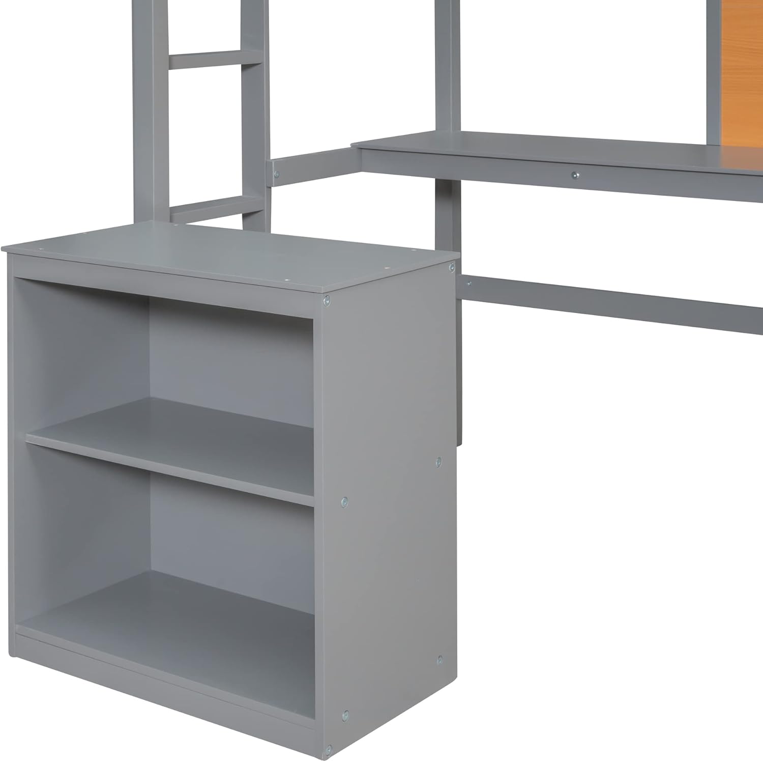 Twin Size Wooden Loft Bed with Desk, Writing Board, and 2 Drawers Cabinet, Gray - Multi-Functional Space-Saver for Kids' Room, 78.90x41.80x69.30 in.