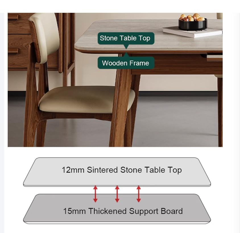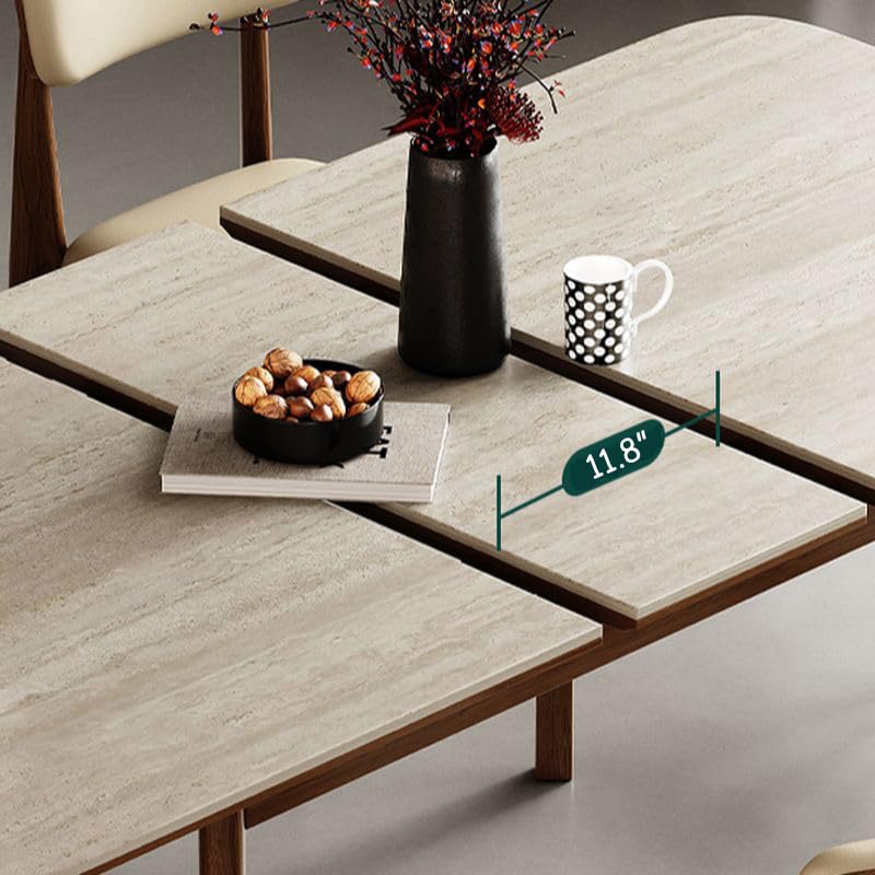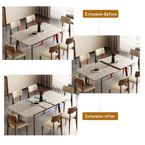 SUSUO Mid-Century Modern Expandable Dining Table, Simplicity Rectangular Sintered Stone Dining Table with Wooden Base, Space-Saving Multifunctional Dining Table, Home Kitchen Furniture
