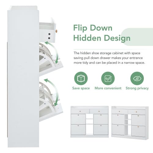 Modern Cabinet with 4 Flip, Multifunctional 2-Tier Storage Organizer with Drawers, Free Standing Shoe Rack for Entrance Hallway, Black