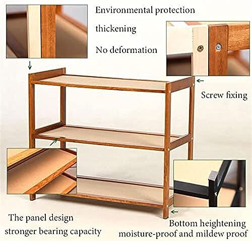 Shoe Storage Shoe Rack Organizer Shelf 3-Tier Shoe Rack Bench Slippers Shelf Storage Multifunctional Bamboo Free Standing Saves Space
