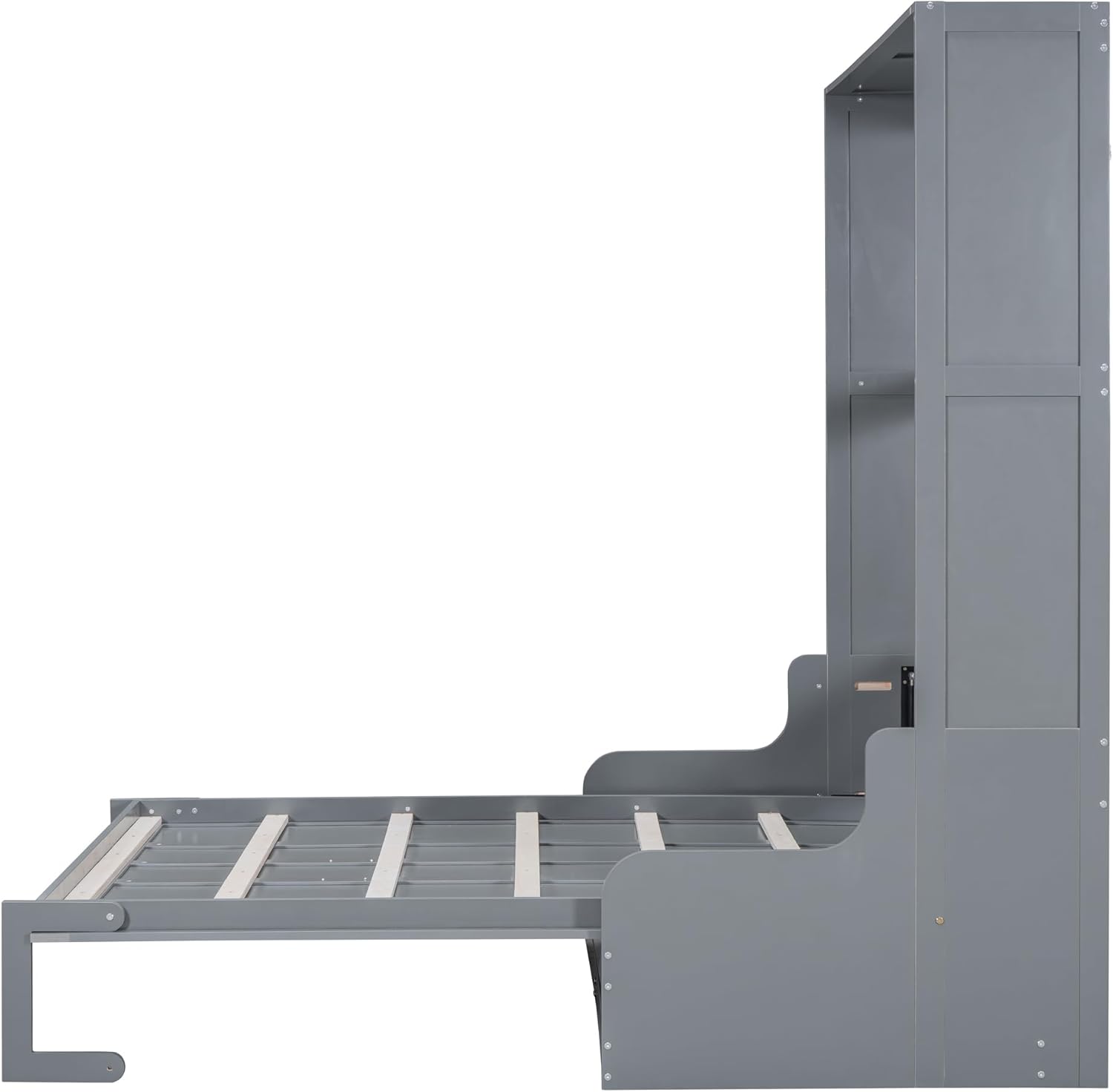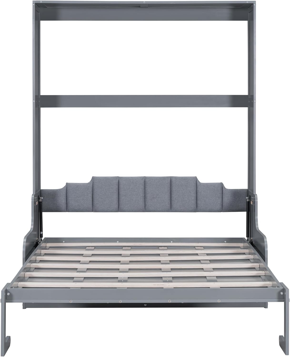 Queen Size Murphy Loveseat Underneath & Upholstered Cushion, Multi-Functional Wall Space-Saving Cabinet Beds for Living Room Apartment, Wooden Frame, No Box Spring Needed, Gray