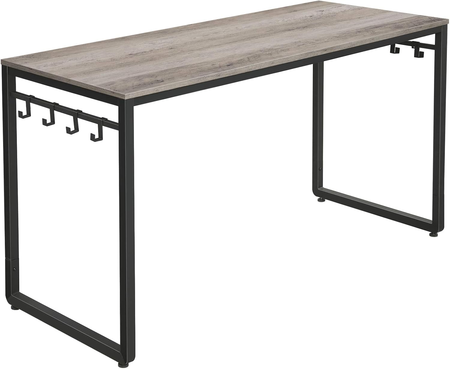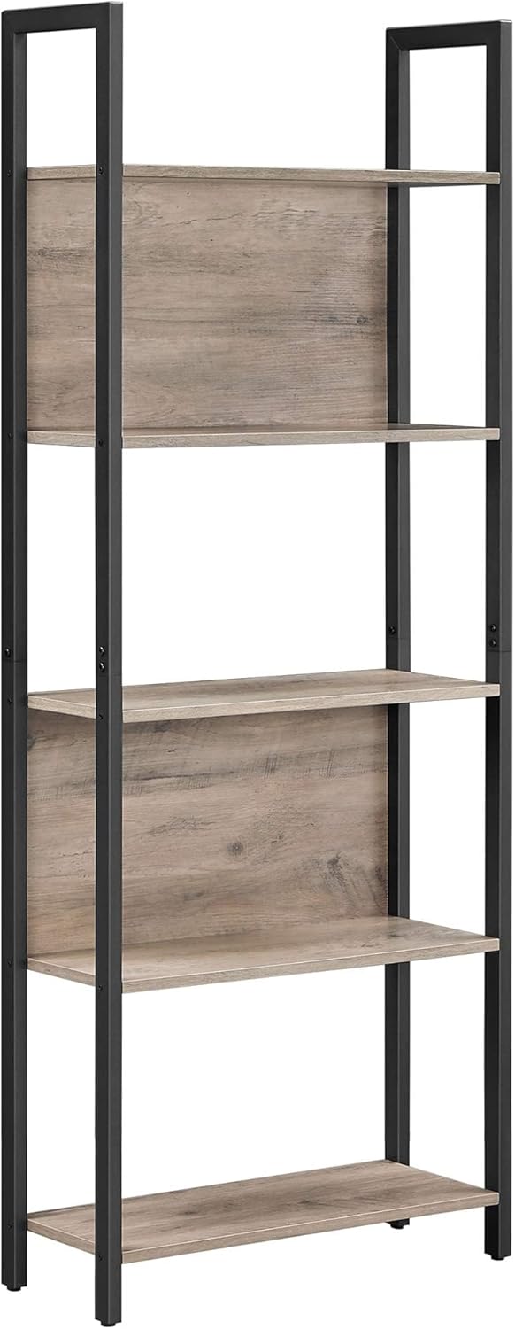 VASAGLE 5-Tier 24.4" W x 65" H Bookshelf and 55.1" W Computer Desk with 8 Hooks, Industrial Home Office Furniture