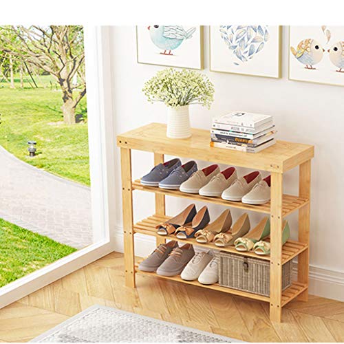 Shoe Storage Shoe Rack Organizer Shelf 3-Tier Shoe Rack Bench Slippers Shelf Storage Upright Multifunctional Bamboo Free Standing Saves Space