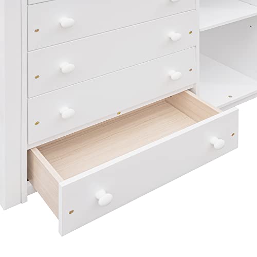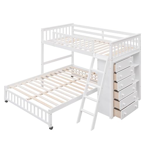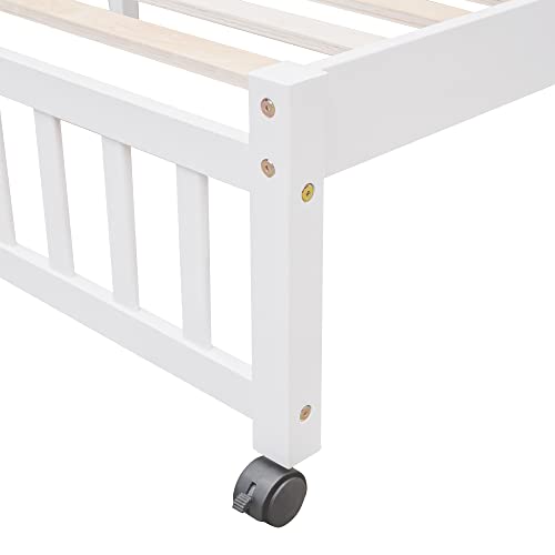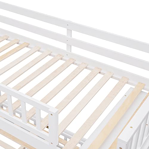 Wooden Full Size Daybed with Storage Shelves,Two Storage Drawers and Study Desk,Multi-functional Full Bed Frame for Saving Space,Antique White