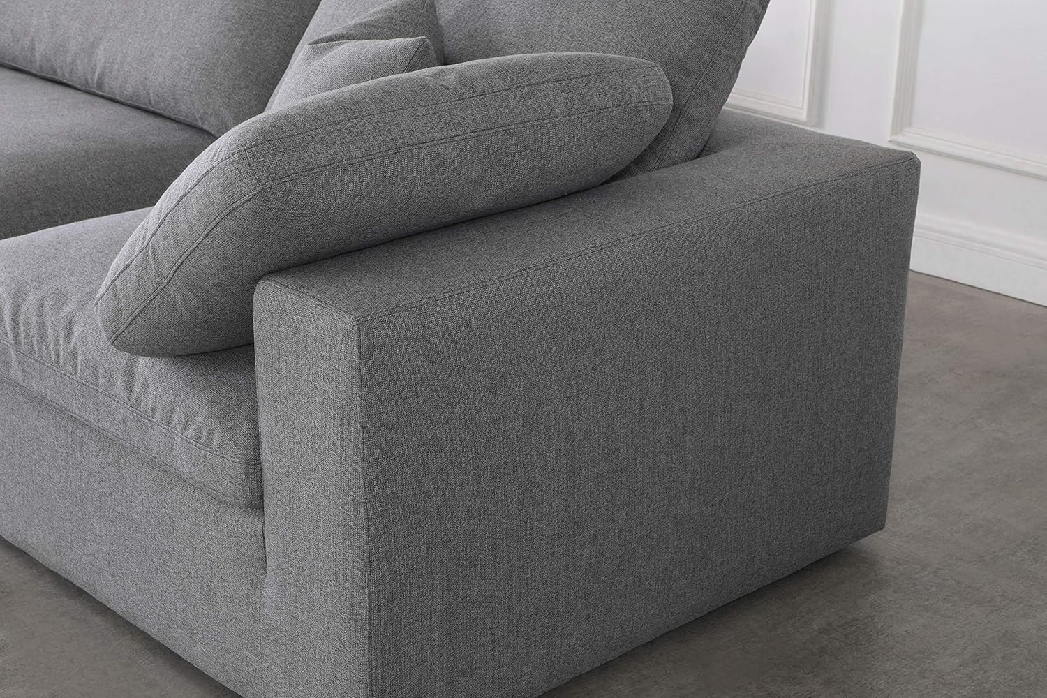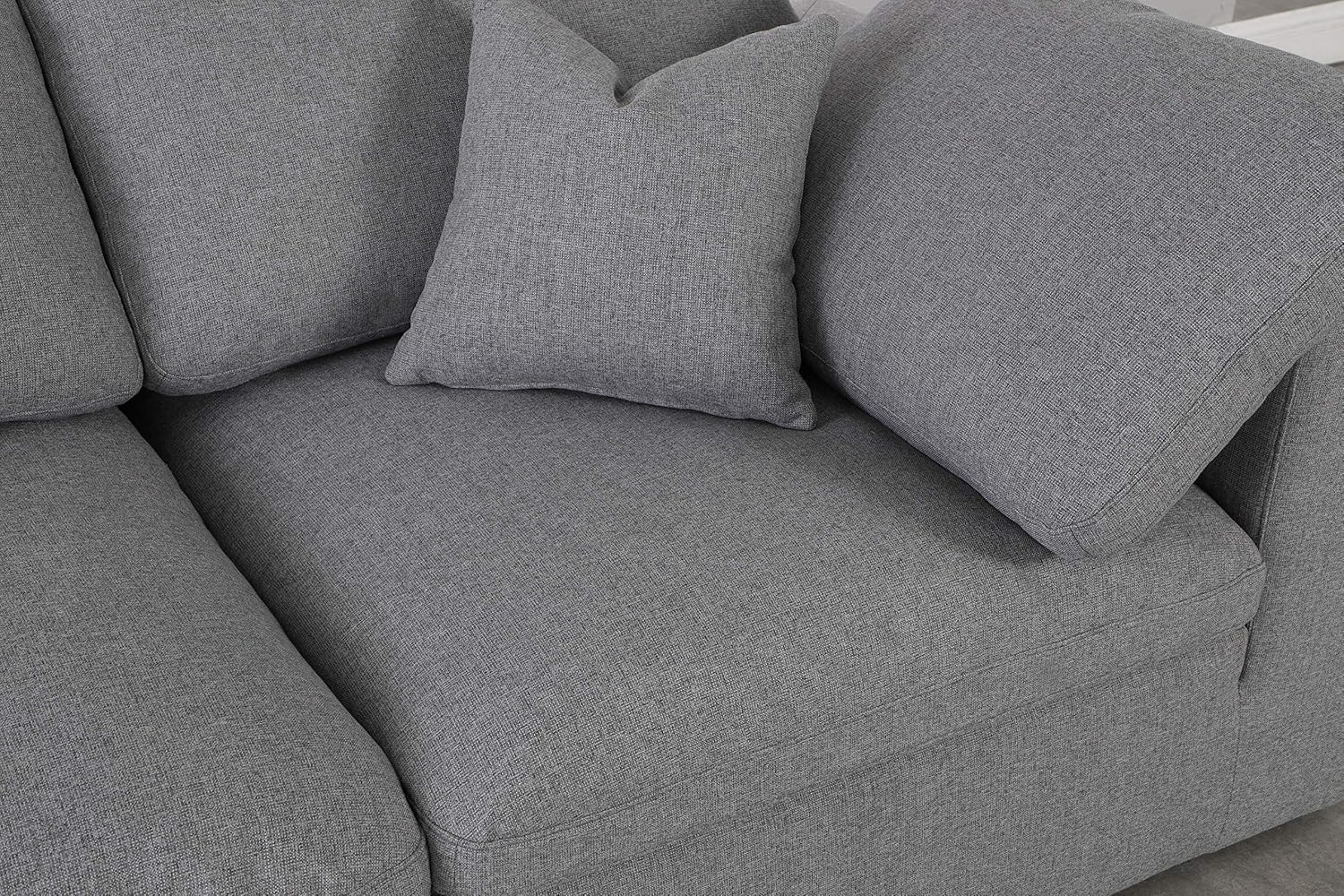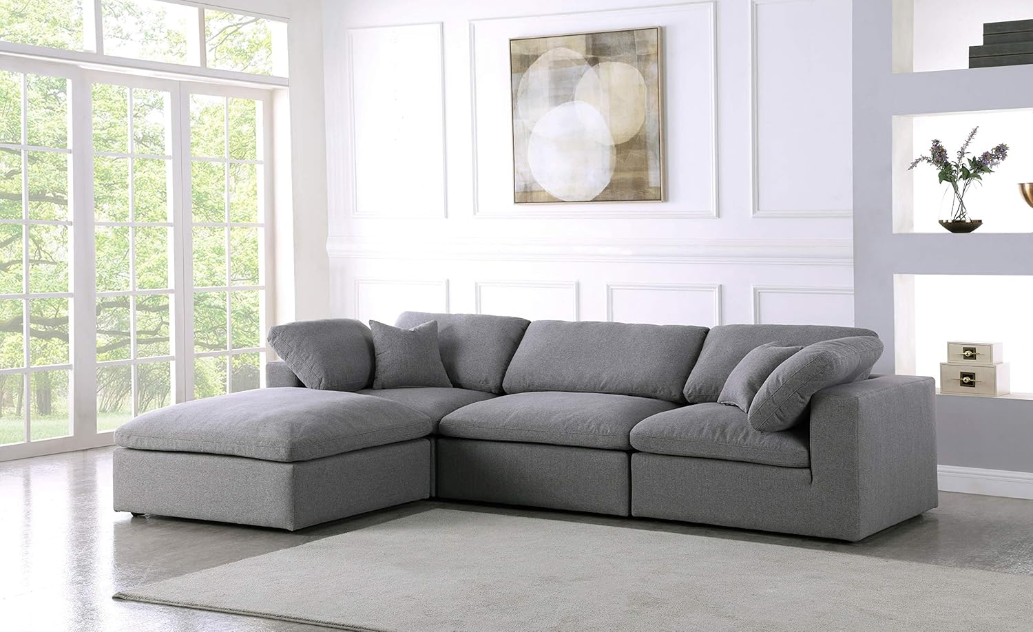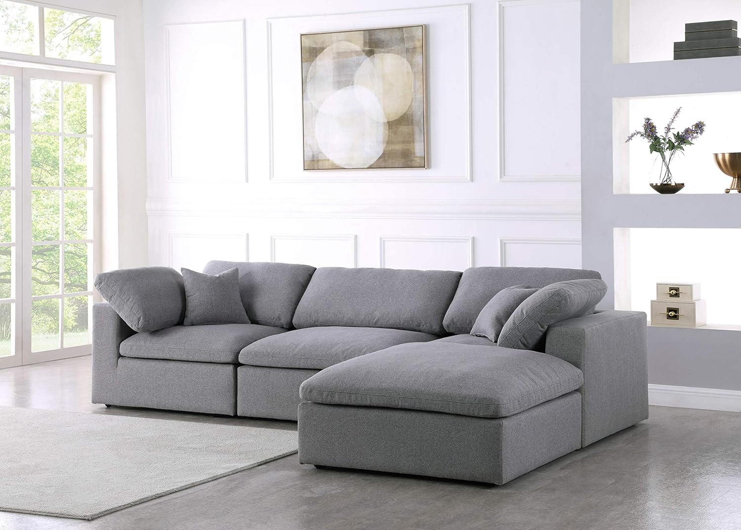 Meridian Furniture Serene Collection Modern | Contemporary Deluxe Comfort Modular Sectional, Soft Linen Textured Fabric, Down Cushions, 2 Corner + 1 Armless + 1 Ottoman, Grey