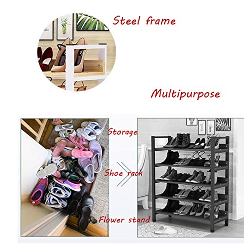 Shoe Storage Shoe Rack Organizer Shelf Shoe Rack 60/80cm Wide Slippers Storage Shelves Organizer Multi-functional Plant Shelf Indoor and Outdoor Saves Space Black Frame + Brown MDF