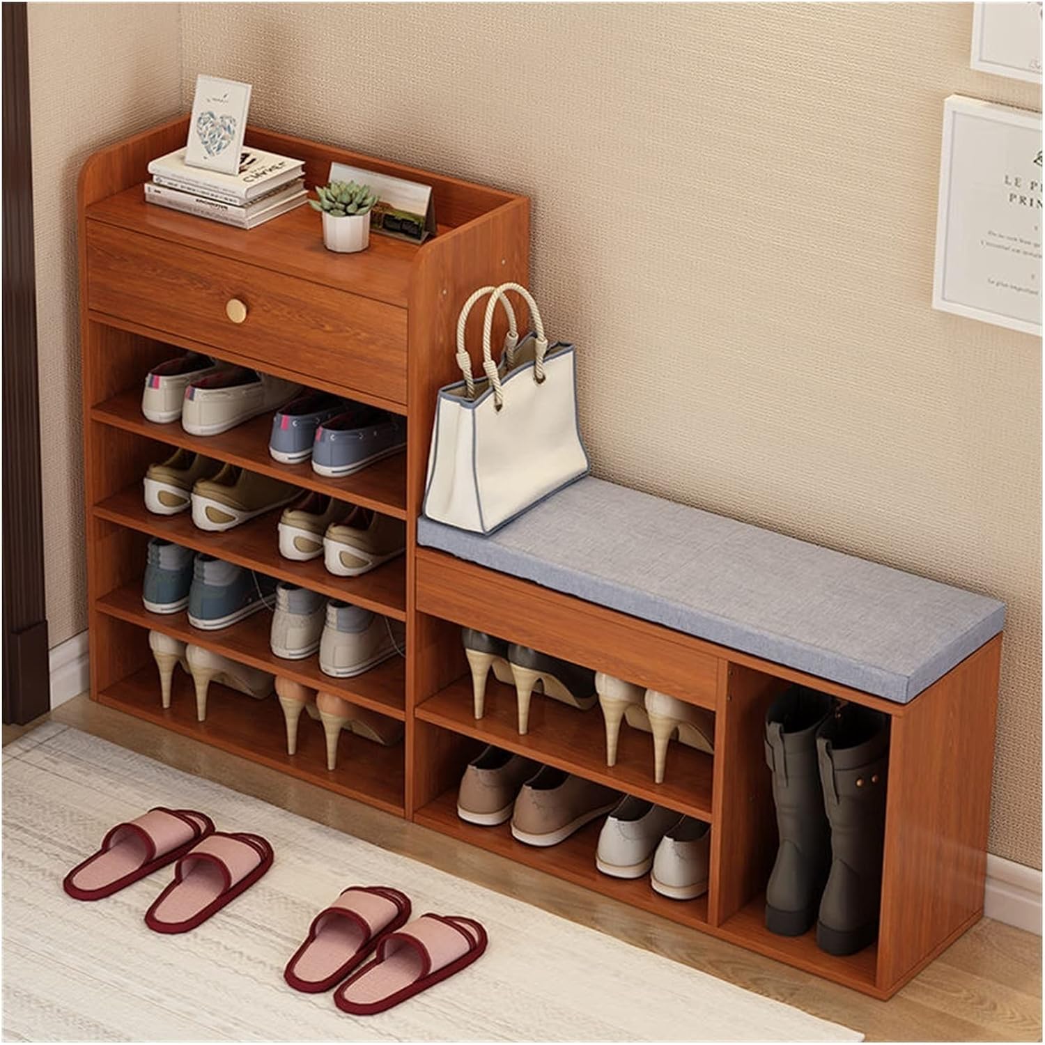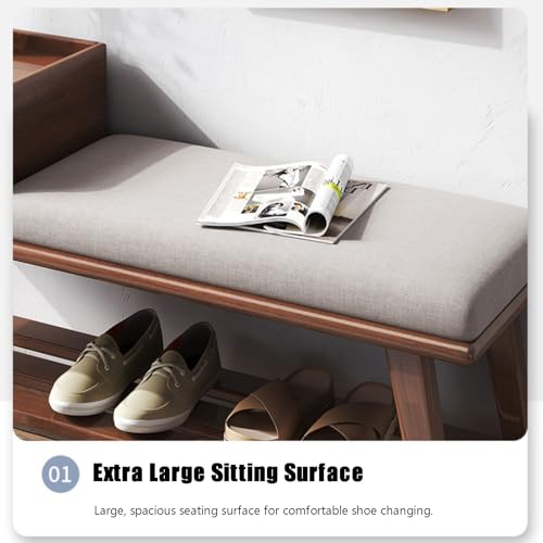 Solid Wood Shoe Bench, Multifunctional Space Saving Organization Storage w/Padded Seat Shoe Rack Bench for Entryway Bedroom Living Room