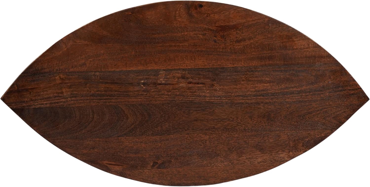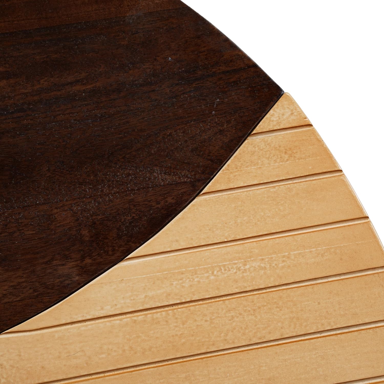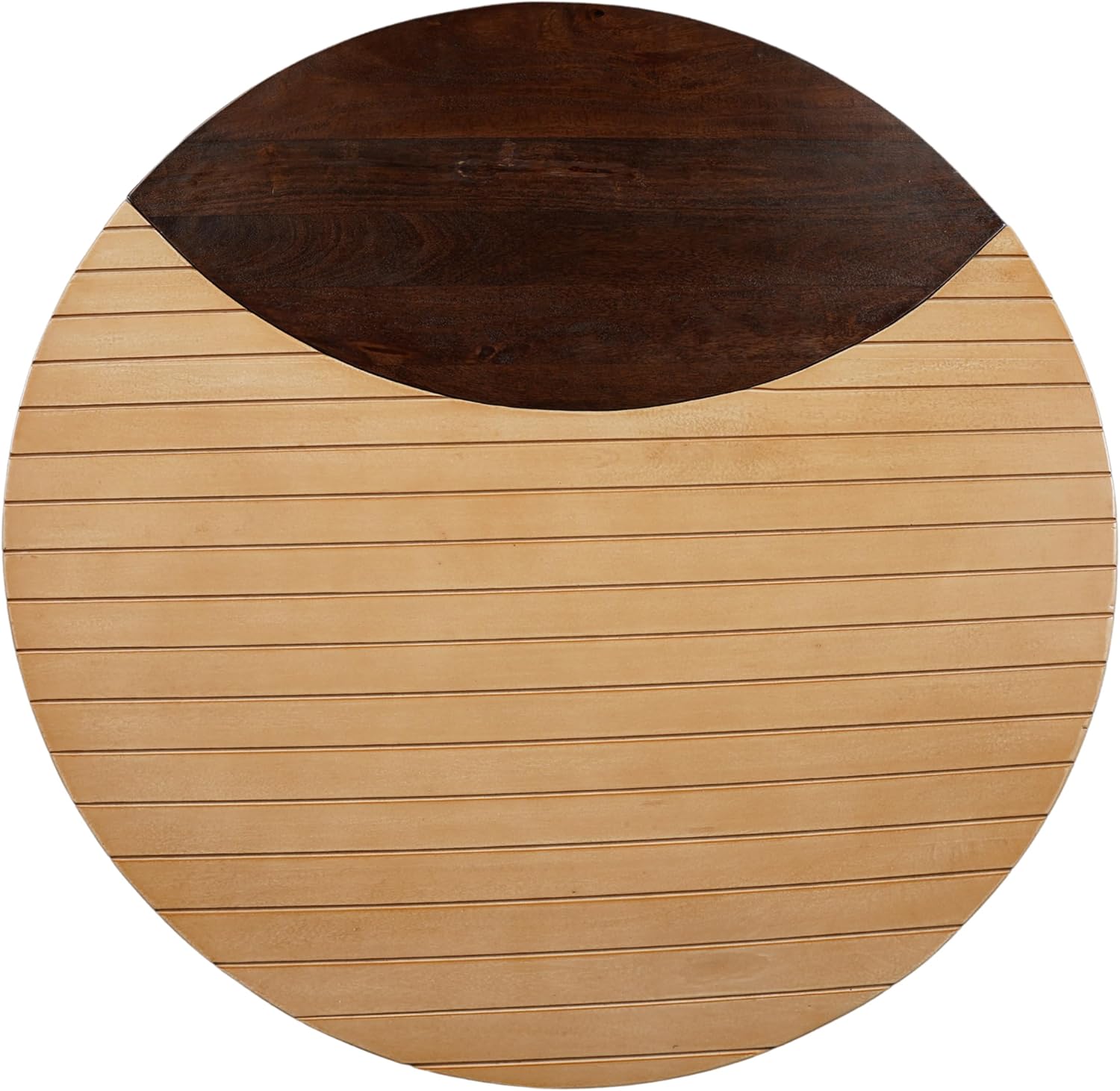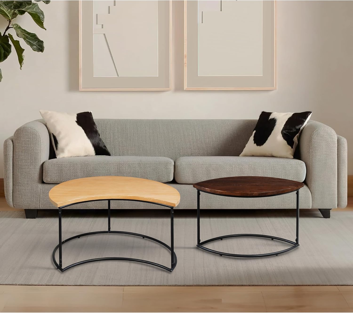 The Urban Port 35 Inch Round Crescent Mango Wood Coffee Nesting Tables with Metal Frame, Set of 2, Dark and Natural Brown