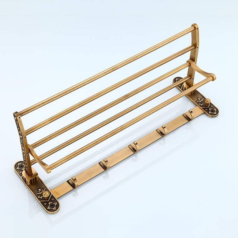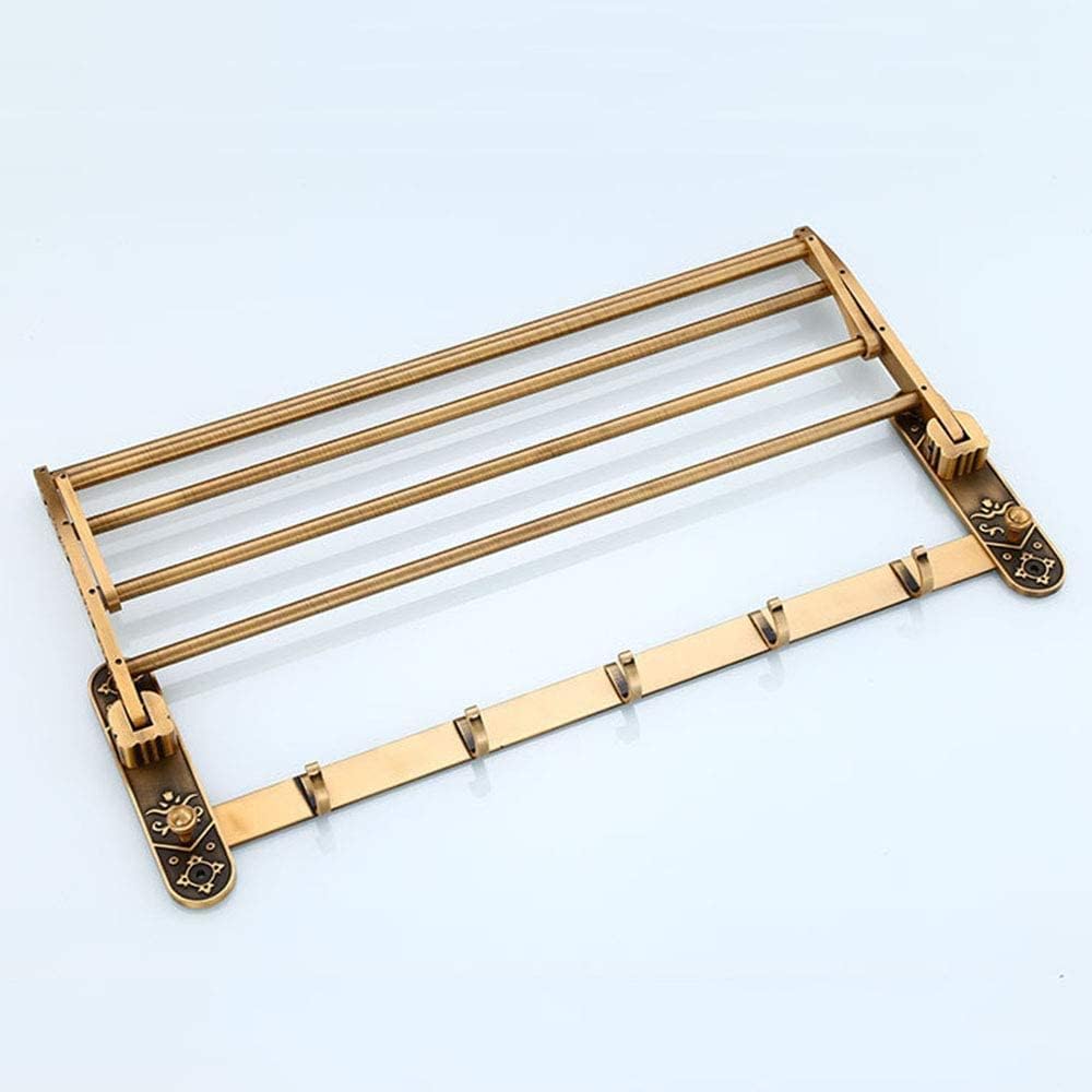 Towel Rack Retro Towel Rack, Household Folding Space Aluminum Wall-Mounted Bath Carved Multifunctional Bathroom Rack Towel Holder Bathroom Hardware/White