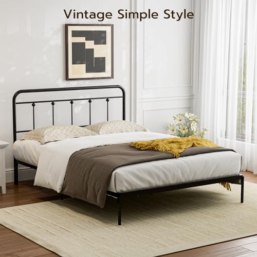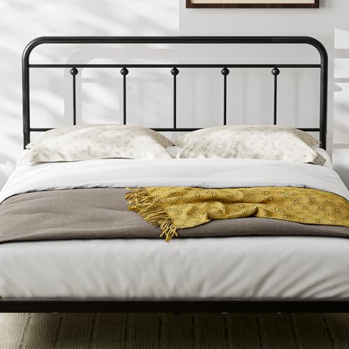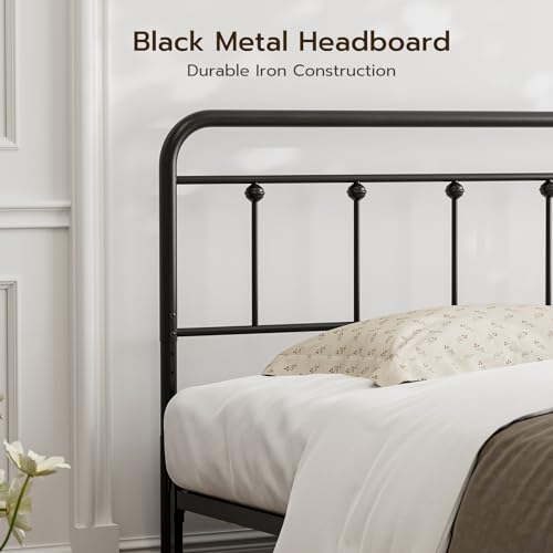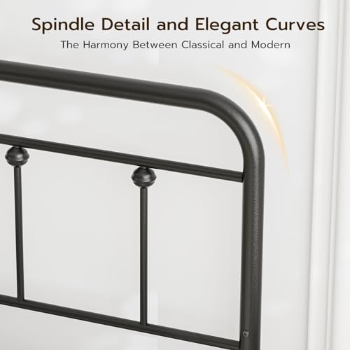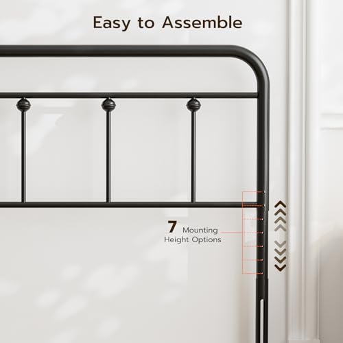 California King Size Headboard with Black Metal Construction, Spindle Detail and Elegant Curves Design, Adjustable Height, Farmhouse and Vintage style,Steel Headboard Only for Bedroom