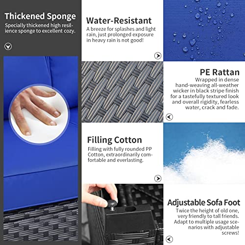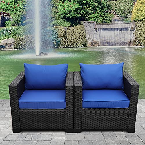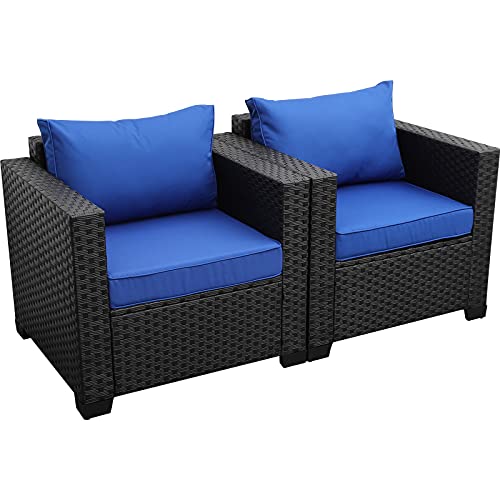 Rattaner Patio Single Sofa Chairs Outdoor Chairs Set of 2 Outdoor Sofa Accent Chair Outdoor Furniture Club Chair with Anti-slip Cushions and Waterproof Cover, Peacock Blue