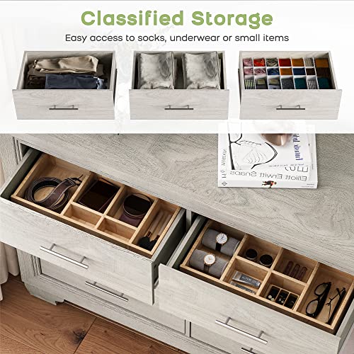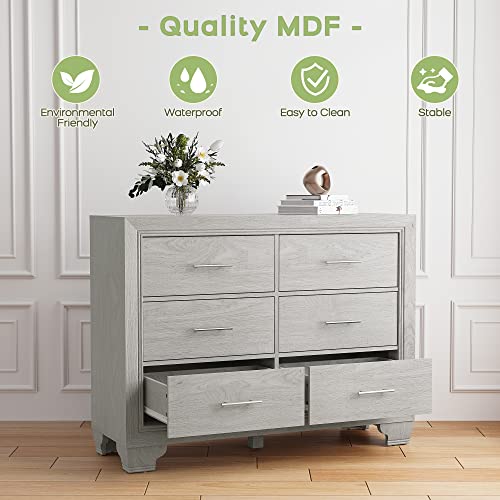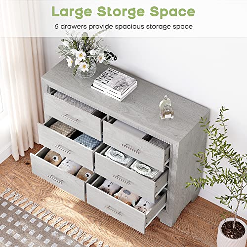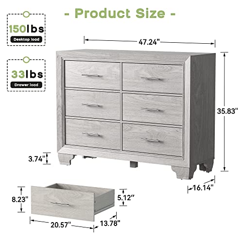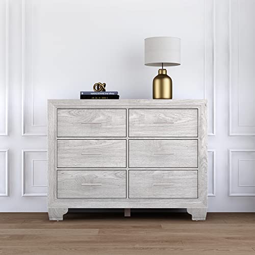IDEALHOUSE French Vintage Dresser for Bedroom with 6 Drawers, Vintage Design Wood Drawer Dresser Chest of Drawers for Closet, Living Room, Hallway, Nursery, Kids Bedroom (White)