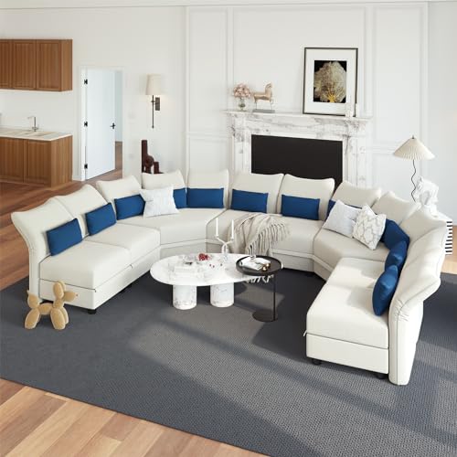 LLappuil Most Comfy Large U Shaped Modular Sectional Sofa Convertible Couch with Storage for Living Room,White