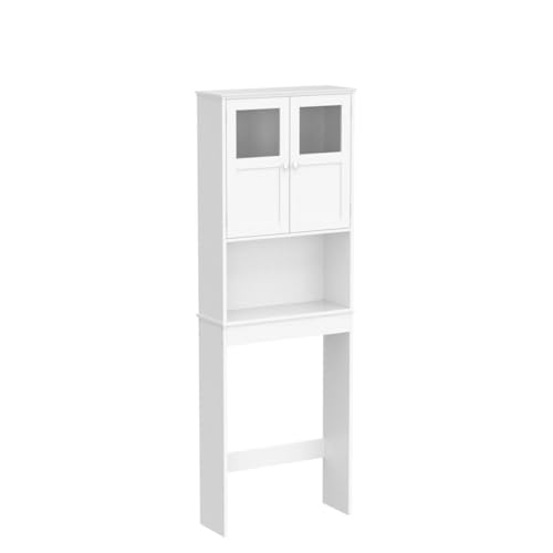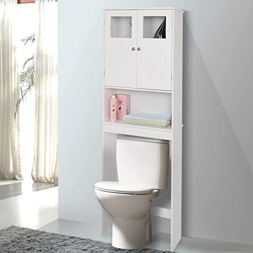 Bonnlo Over The Toilet Storage Cabinet with Adjustable Shelf White Bathroom Floor Organizer Space Saver with Double Doors, 67" Height